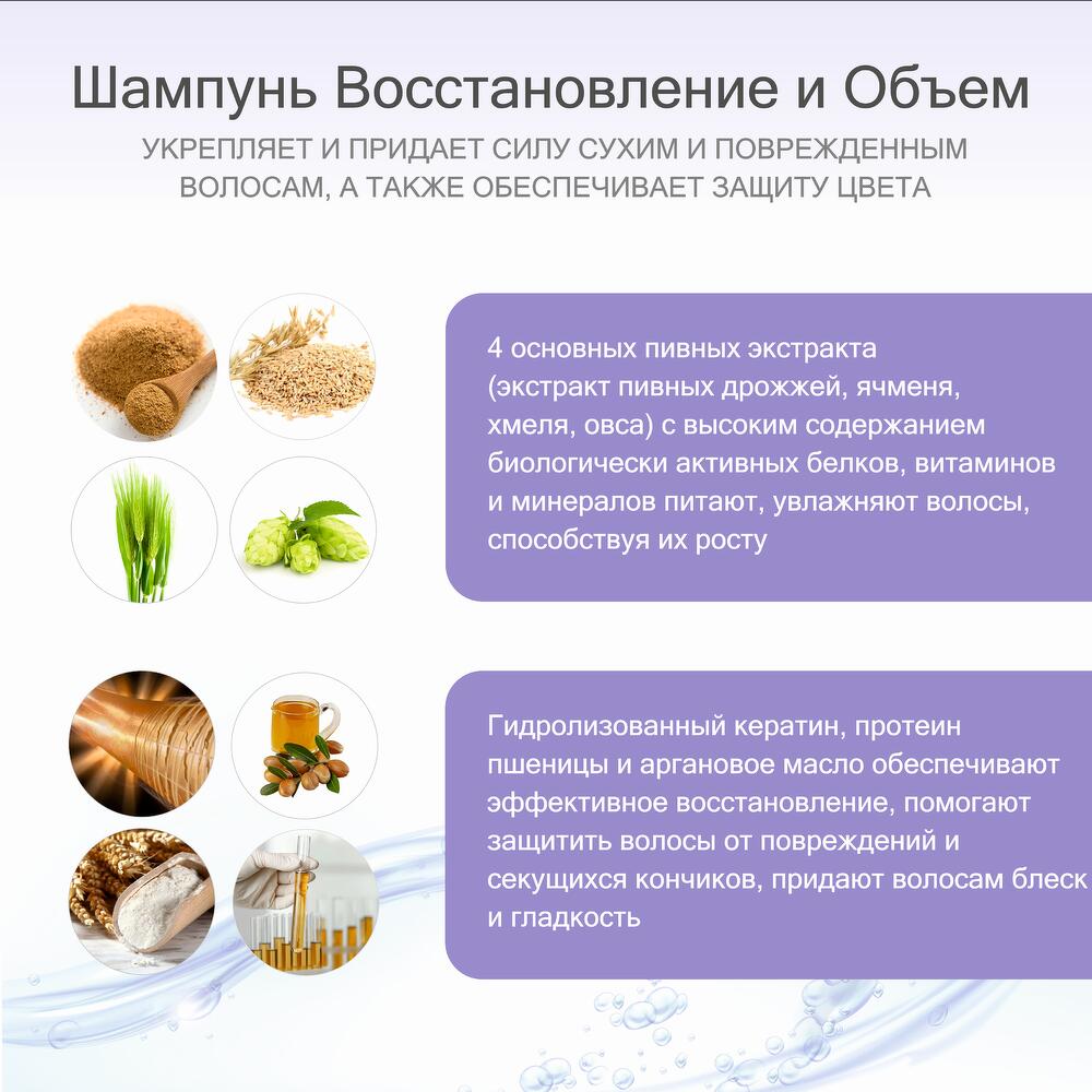 Step 1: Repair and Volume Shampoo with Beer Extracts, Keratin & Argan Oil Bring back to life dry, damaged, and coloured hair Ms Beerskin Repair & Volume Shampoo is formulated to strengthen and fortify dry and damaged hair and help to protect hair color. It contains 4 main Beer Extracts (hydrolyzed yeast extract, barley seed extract, hop extract, and oat extract) with a high proportion of biologically relevant proteins, vitamins, and minerals. Hydrolyzed Keratin, Wheat Protein and Argan Oil provide effective repair, help to protect hair from damage and split ends, enhance hair gloss and smoothness. Thymus Vulgaris and Camellia Sinensis Leaf Extracts work in synergy with D-Panthenol, which prevents hair damage, thickens hair, improves luster and sheen, and acts as a long-lasting hair moisturizer, while Allantoin being keratolytic, helps moisturize hair and scalp and softens keratin, which allows the scalp and hair to hold onto moisture. A calming mix of 12 Herbal Extracts gives a wonderful aromatic scent. The formula is free of sulfates, parabens, and silicones.