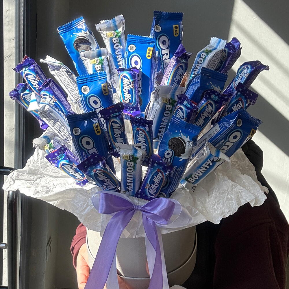 Коробка шляпная - 1 pz Баунти мини - 10 pz мини милкивей - 15 pz орео печенье - 7 pz