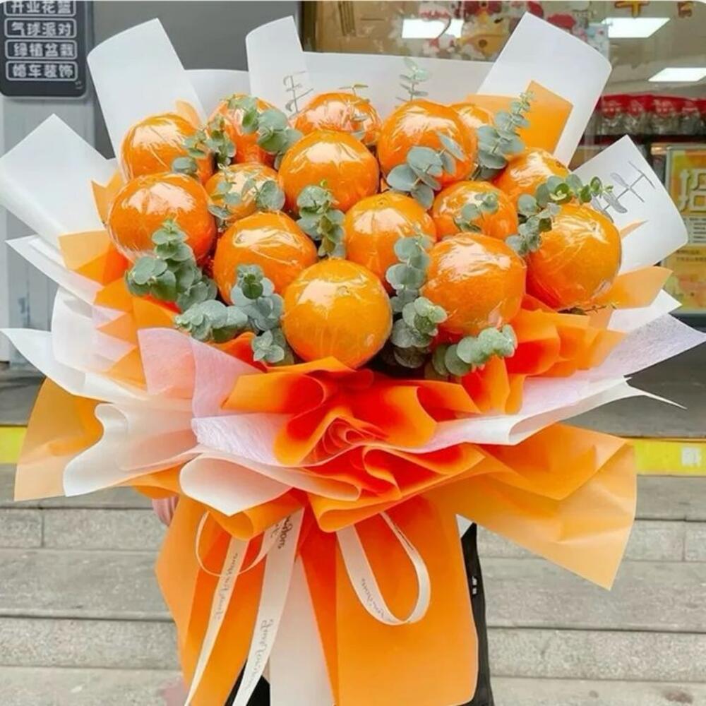 Яркий, сочный букет из свежих мандаринов – идеальный подарок для тех, кто ценит оригинальность и свежесть. Аромат цитрусовых не только поднимет настроение, но и создаст атмосферу праздника. Этот необычный букет станет ярким акцентом в любом интерьере и порадует как своим внешним видом, так и вкусом. Прекрасный выбор для любителей натуральных, витаминных подарков!