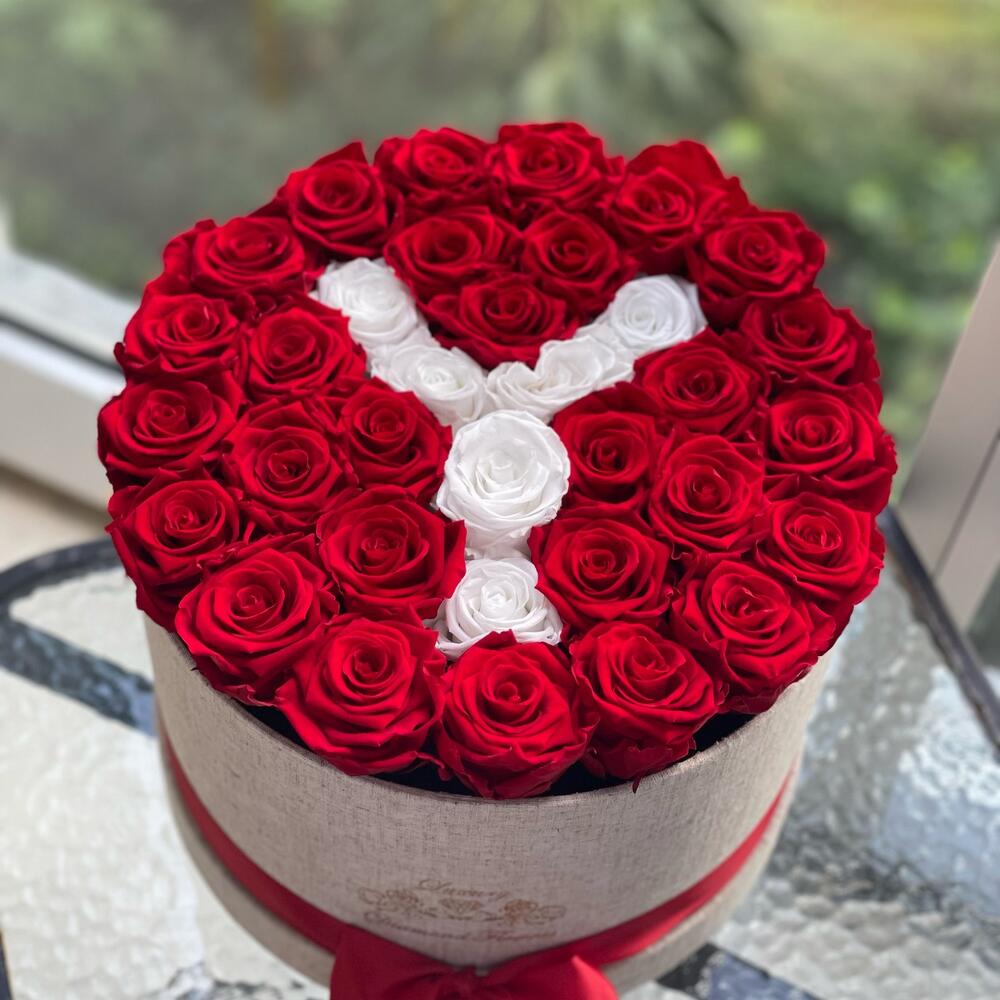 Fino a 33 rose stabilizzate in scatola rotonda in lino dureranno anni. Si prega di indicare nelle note il colore delle rose. Disponibili : rose rosse, rose rosa, rose bianche, rose blu scuro, rose pesca, rose gialle