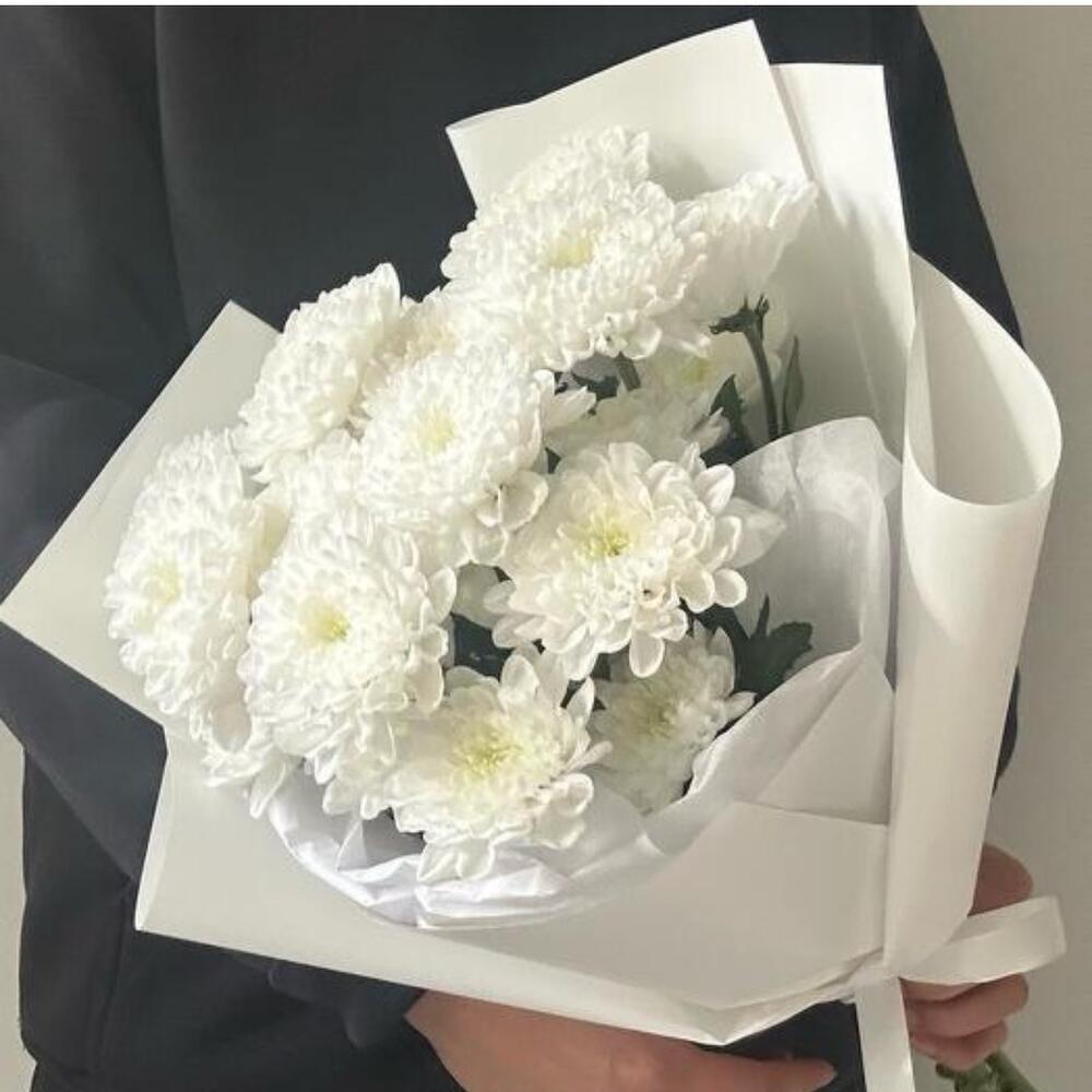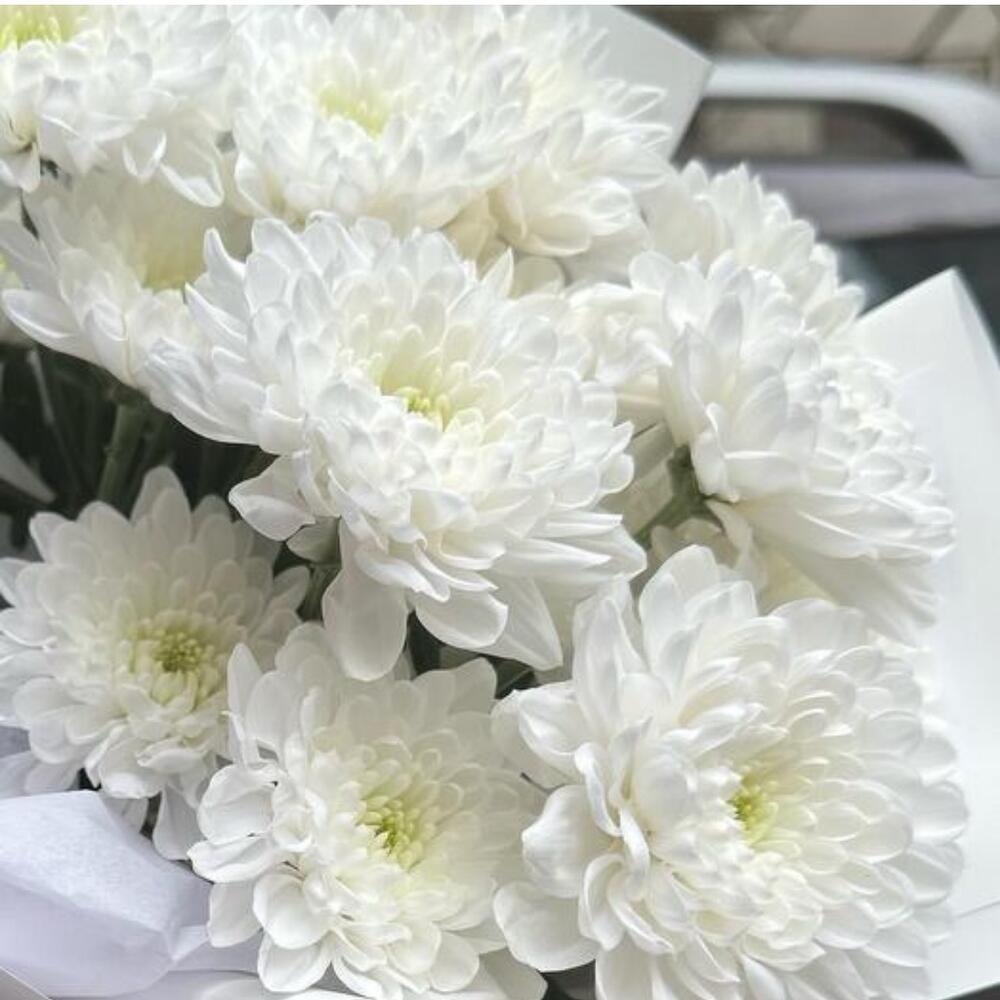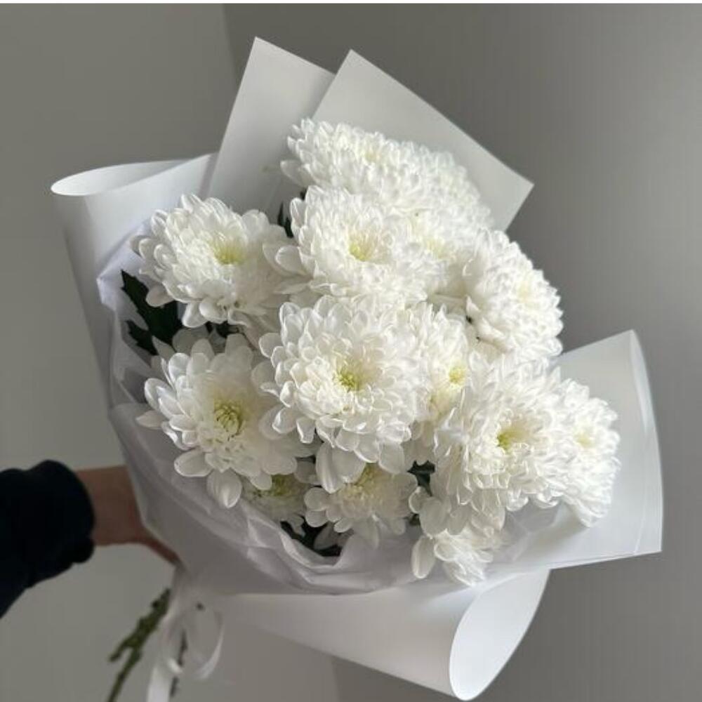 Стойкий букет белых хризантем