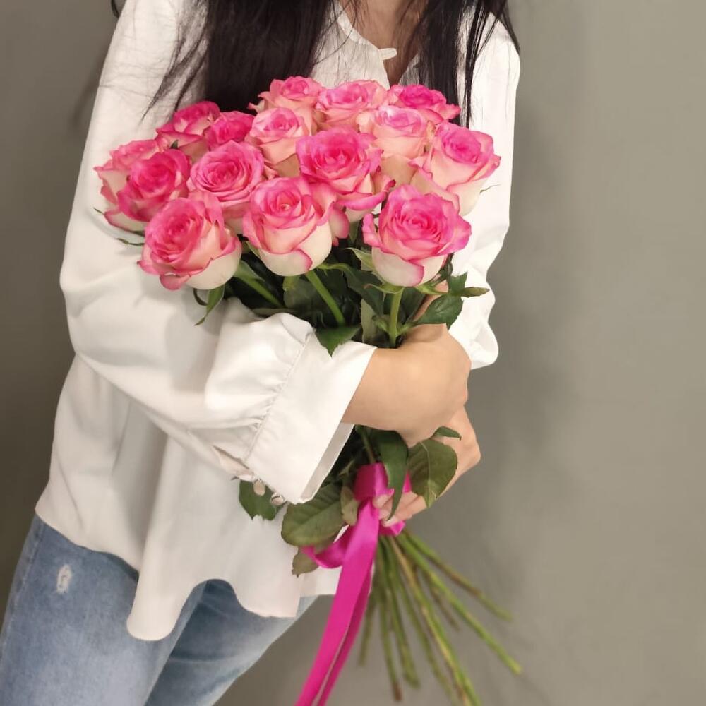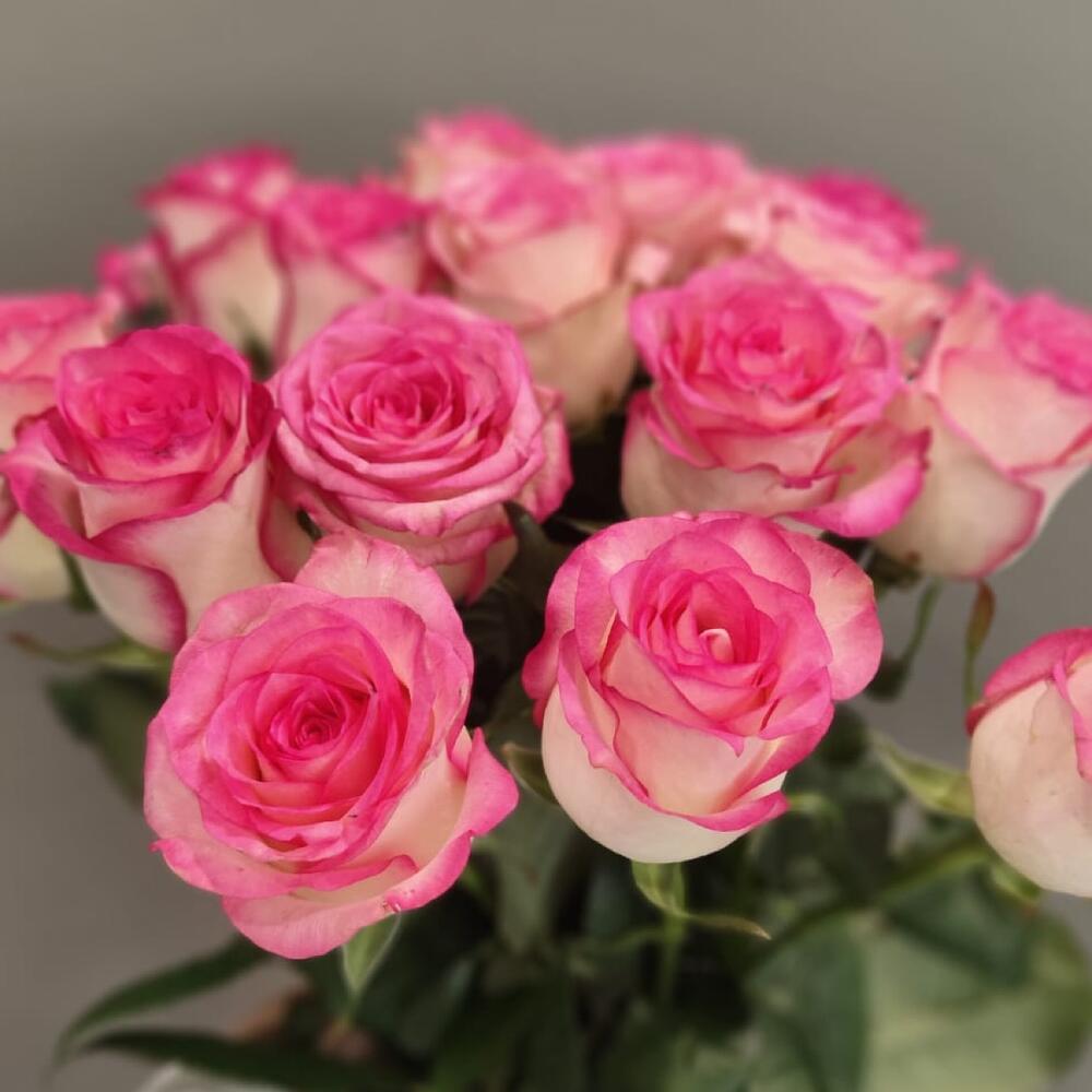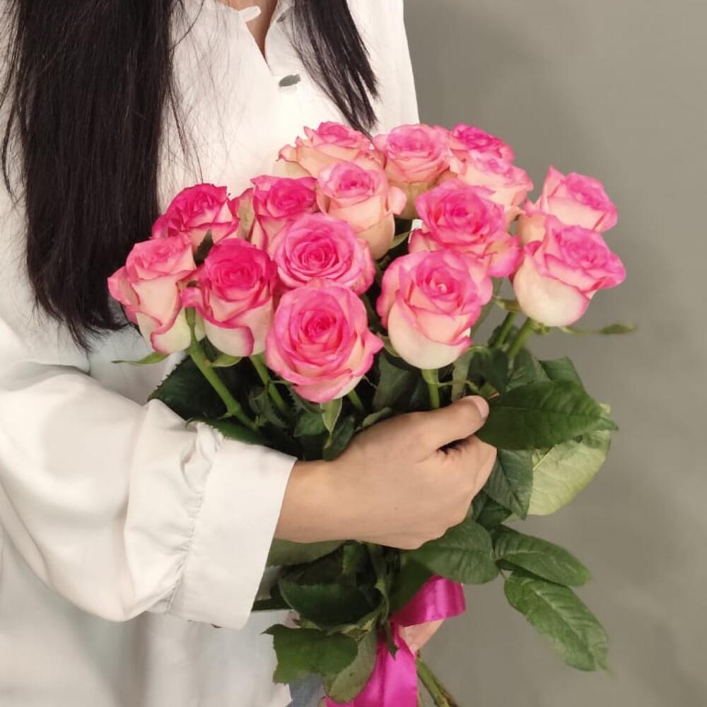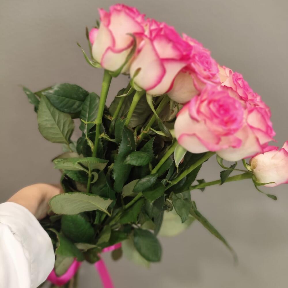 Bouquet di 15 rose rosa-bianche Jumiliya 70cm