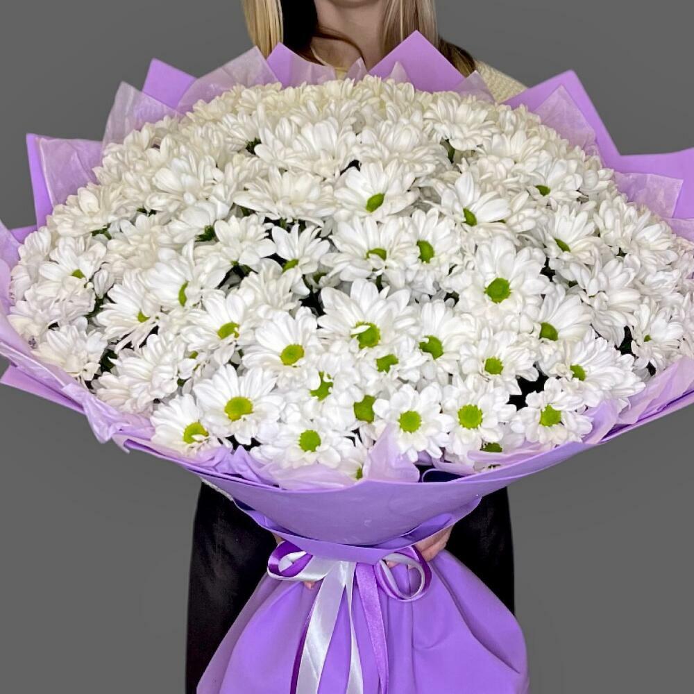 Cespuglio di crisantemo - 25 pz Silenzio - 3 pz Атласная лента - 1 pz Упаковка дизайнерская - 5 pz