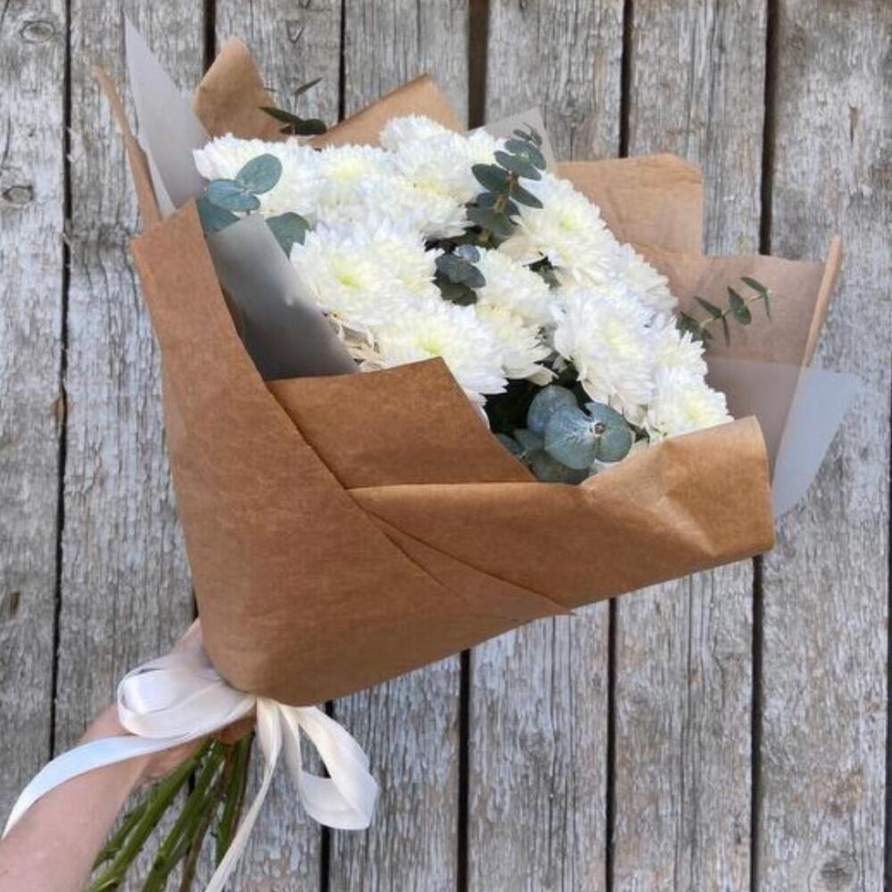 Cespuglio di crisantemo - 5 pz Eucalipto - 4 pz Крафт - 2 pz Матовая пленка - 1 pz