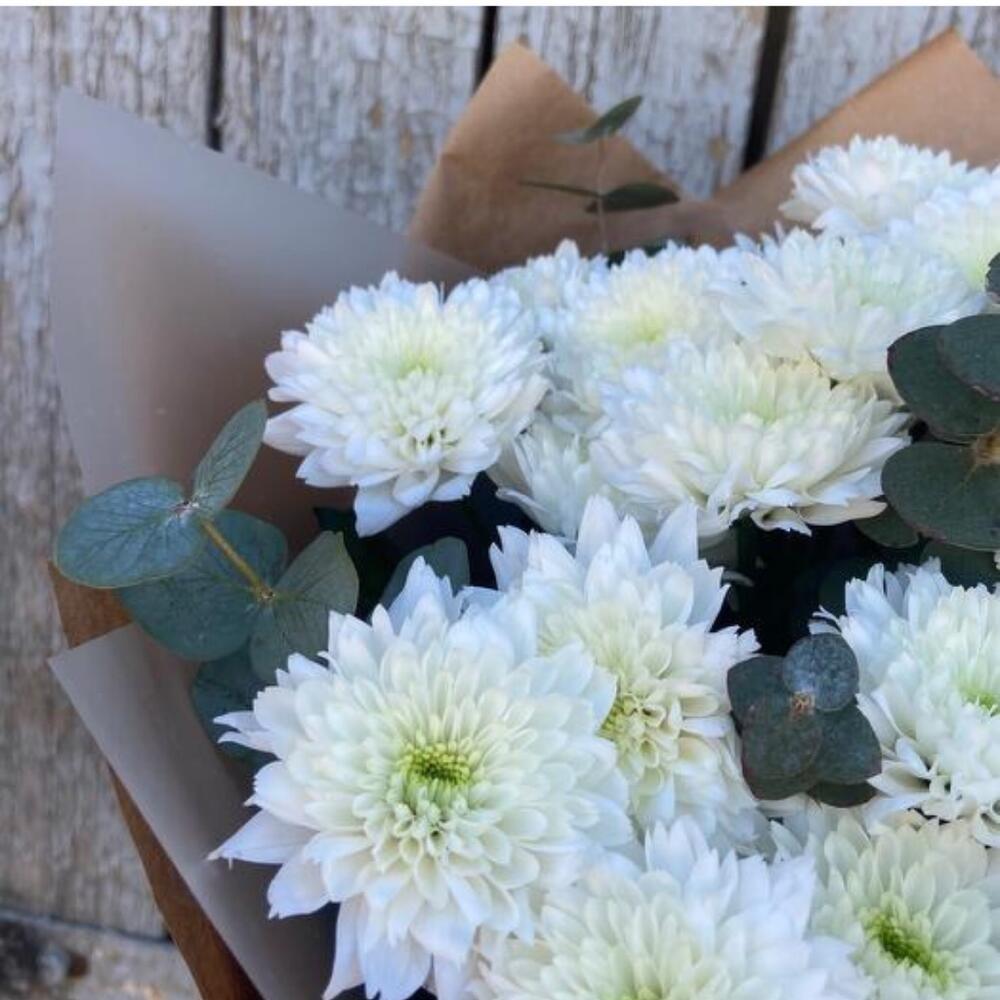 Cespuglio di crisantemo - 5 pz Eucalipto - 1 pz Nastro di raso - 1 pz Крафт - 2 pz Пленка матовая - 2 pz
