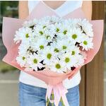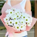 Этот изысканный монобукет состоит из пяти ромашковых хризантем, украшенных двумя дизайнерскими упаковками и завершенных лентой из атласа. Утонченность и грацию этого букета подчеркивают яркие лепестки цветов, слегка покачивающиеся на ветру. Этот букет станет замечательным подарком для любого случая, принося радость и теплоту в сердца ваших близких.