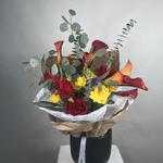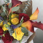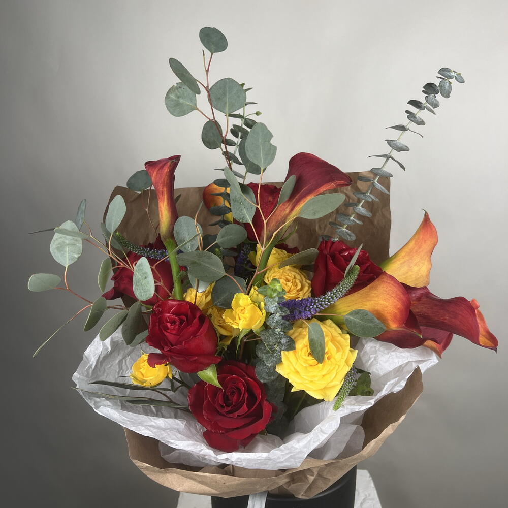 fiore di veronica - 5 pz calle - 6 pz rose rosse - 6 pz rose da giardino - 2 pz misto di fogliame - 1 pz