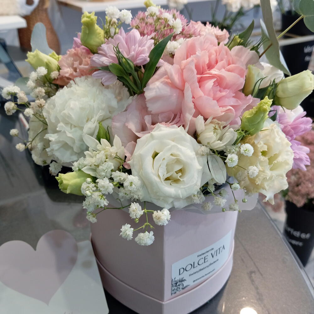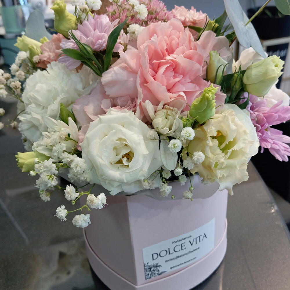 Kolorystyka kwiatów i pudełka może delikatnie się różnić