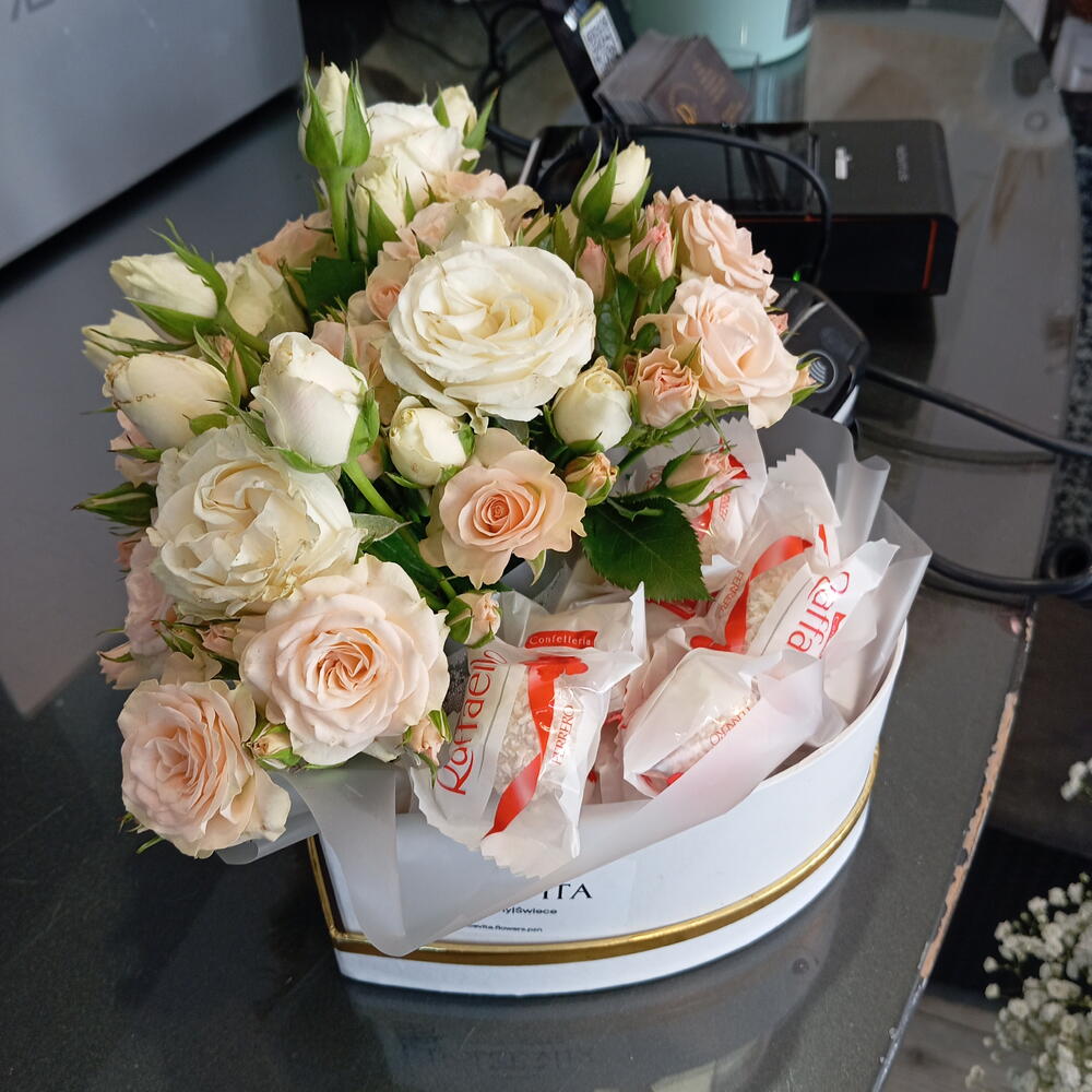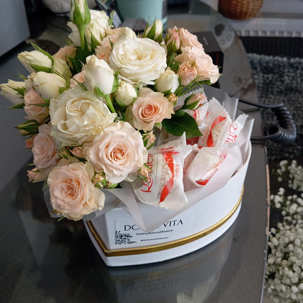 Kolorystyka kwiatów i pudełka może delikatnie się różnić