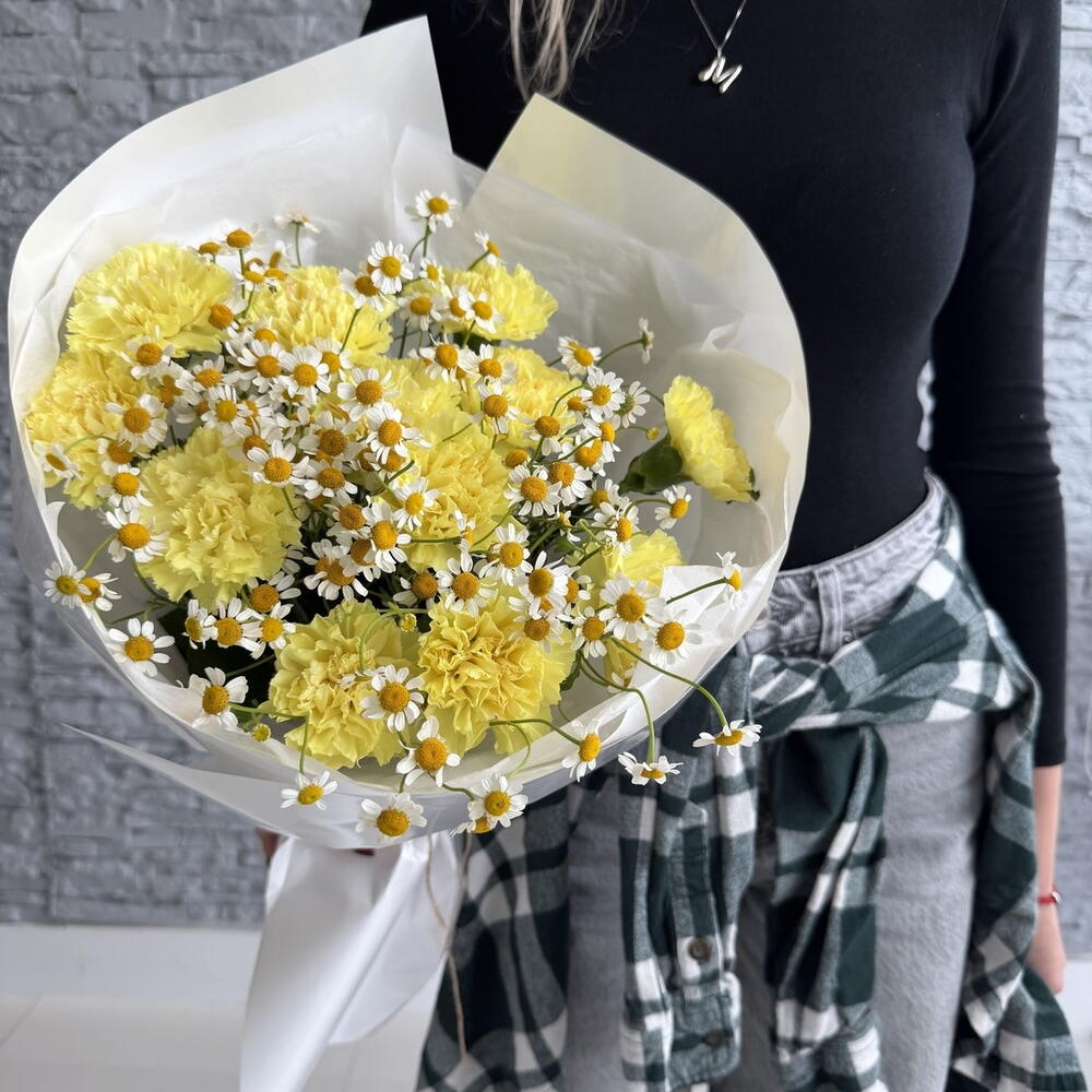 daisies - 3 pz yellow dianthuses - 12 pz