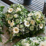 Cuore funerario con fogliame e mix di fiori. Non contiene nigella!!