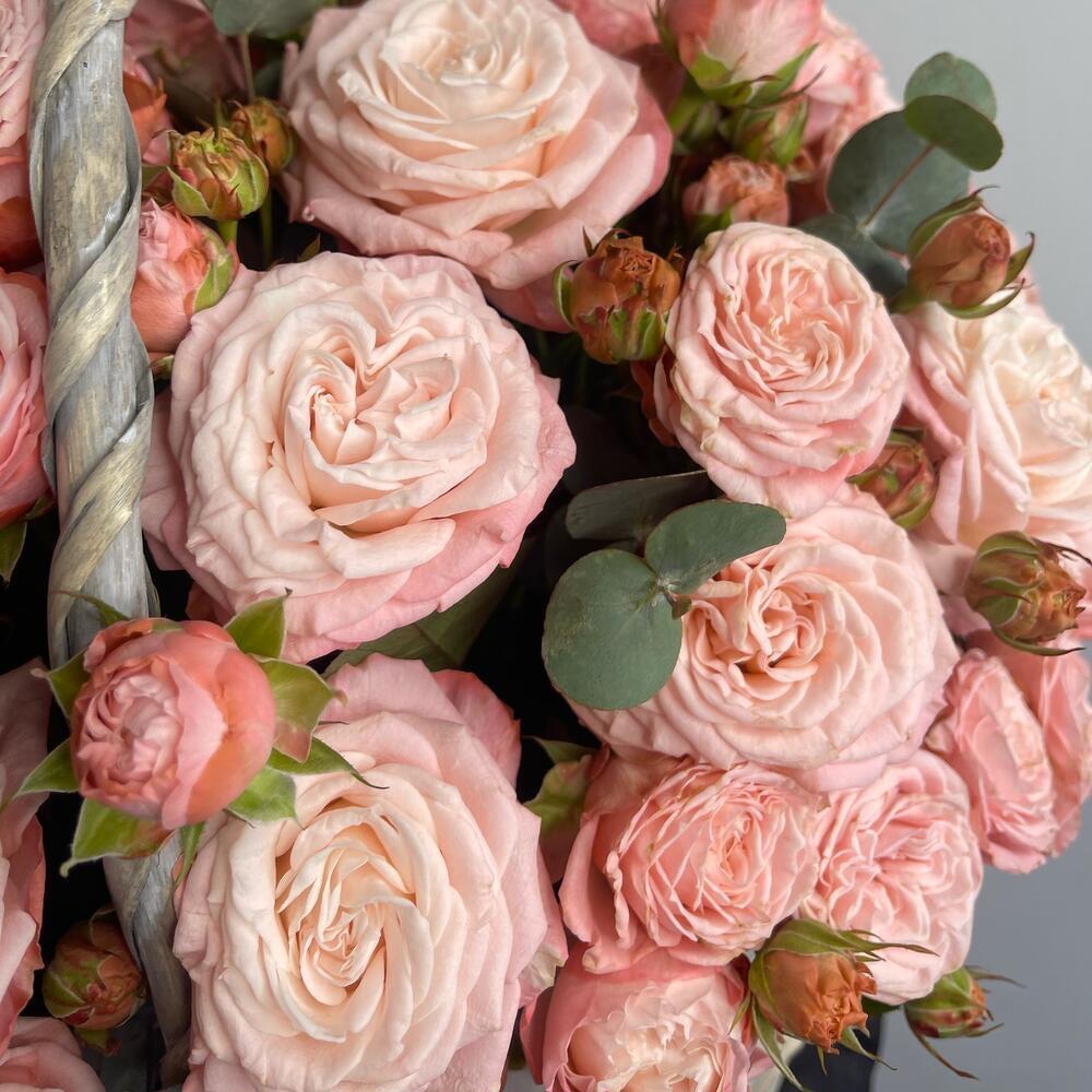Eucalipto - 5 pz Nastro di raso - 1 pz Rosa peonia - 41 pz Cesto intrecciato - 1 pz биофлор - 2 pz