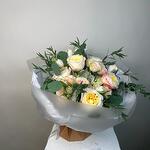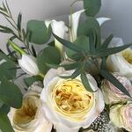 Spray rose - 5 pz tulipani bianchi - 5 pz misto di fogliame - 1 pz rosa da giardino premium - 5 pz ortensia - 2 pz calle - 5 pz