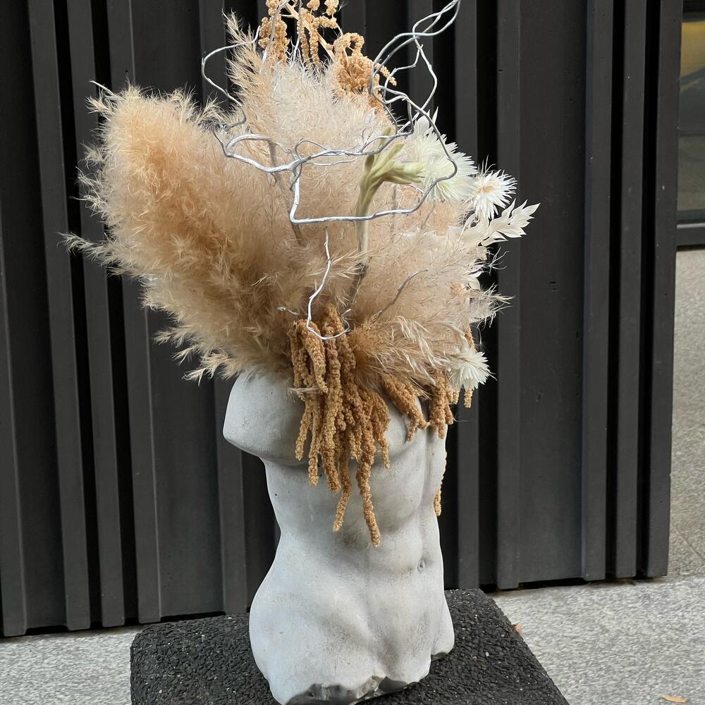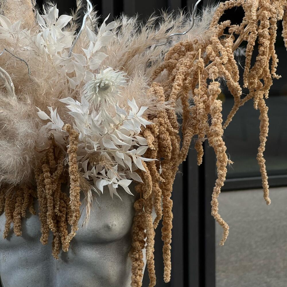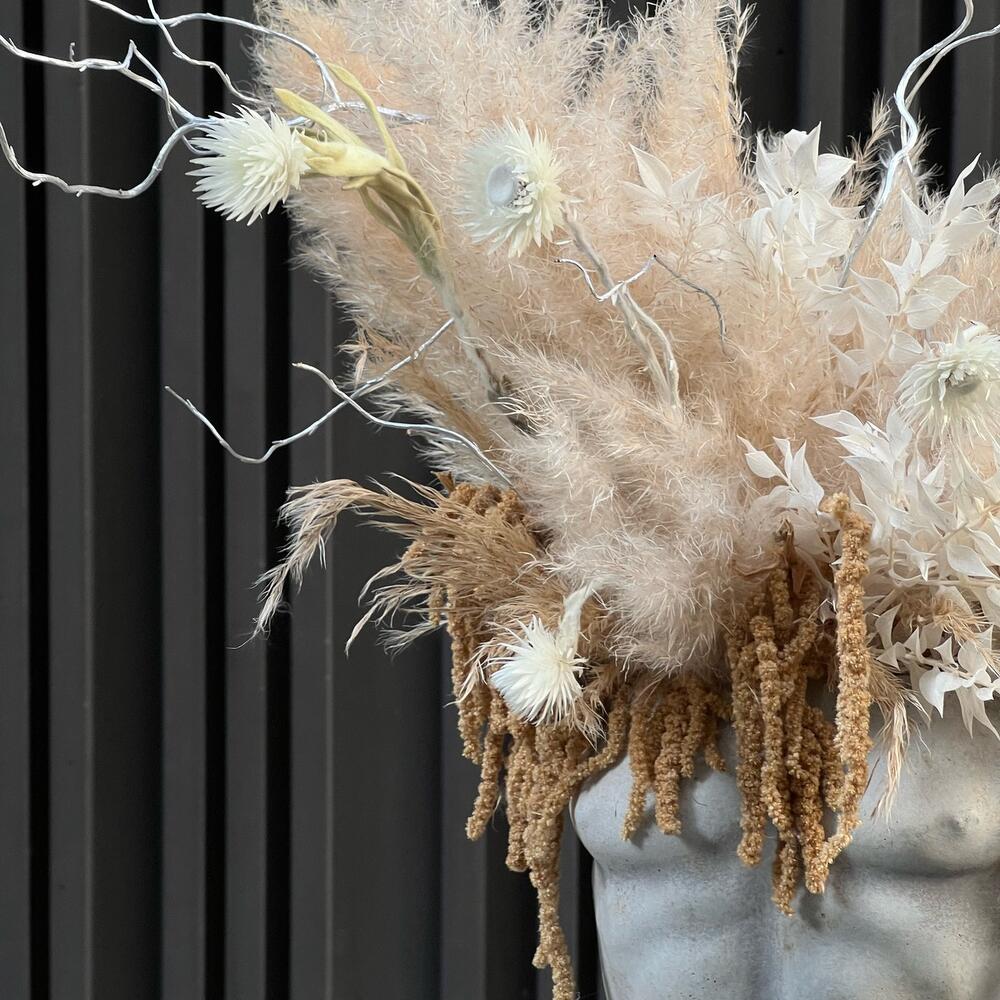 Eucalipto - 3 pz Ruscus - 4 pz amaranto - 5 pz vaso in ceramica - 1 pz erba della Pampas - 4 pz