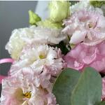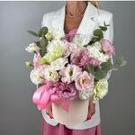 Необычайно красивый букет из нежных Эустом в розовых тонах. Оформлен в шляпную коробку. Для того, чтобы букет дольше вас радовал. Требуется поливать флористическую губку. Композиция дополнена ароматными веточками эвкалипта, что придает шарм букету. Подарок отлично подойдет любимой жене, девушке, подруге, маме, коллеге.  В нашем магазине вы также найдете: сладкие подарки (торты, клубнику в шоколаде, шоколадные изделия) Воздушные шары Мягкие игрушки Украшения Если чего-то не найдете в каталоге, можете написать нам в чат через кнопку «написать», наши менеджеры с удовольствием помогут подобрать ваш лучший подарок.
