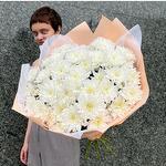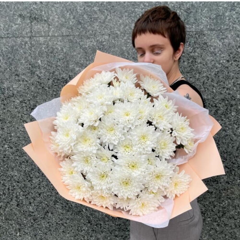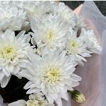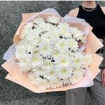 Этот букет из белых хризантем – настоящее украшение сада. Миниатюрные цветы с изящными лепестками создают кокетливую красоту. Он подходит для любого случая: от дня рождения до свадьбы.