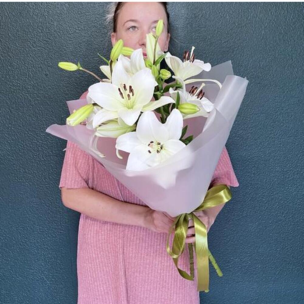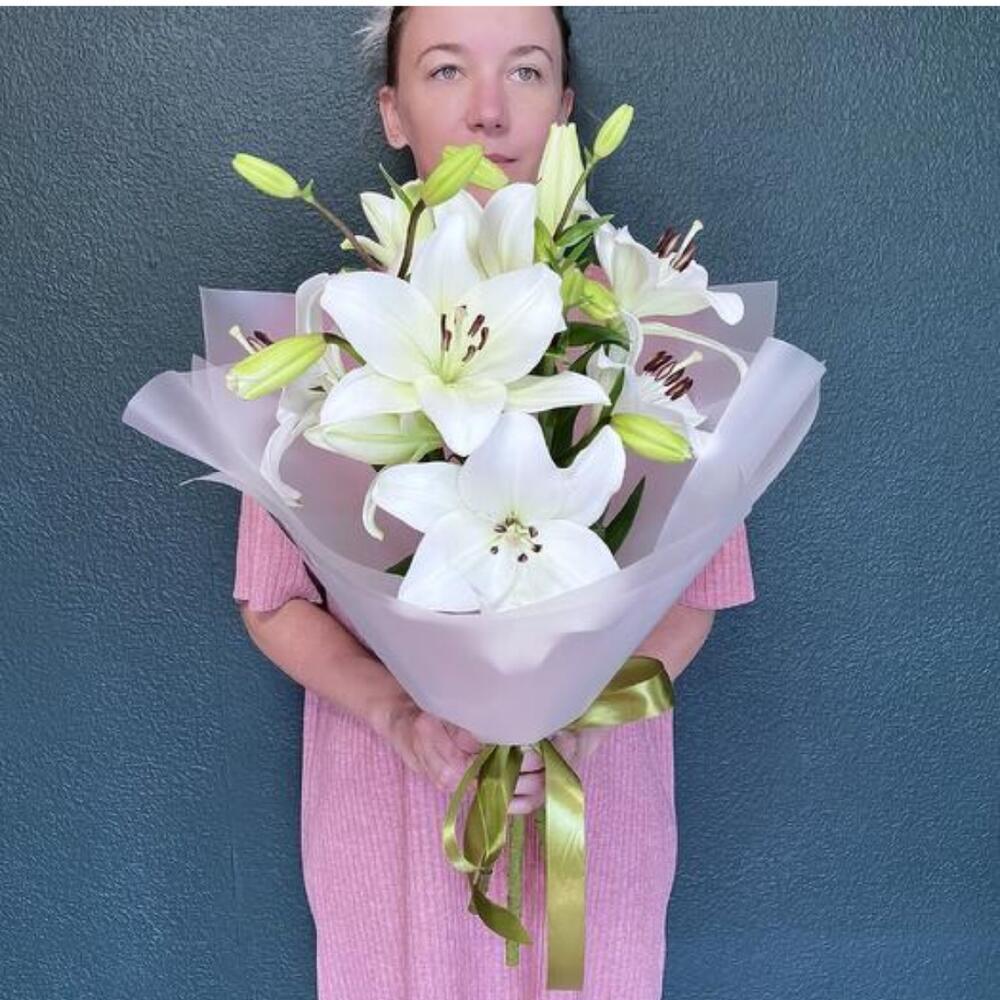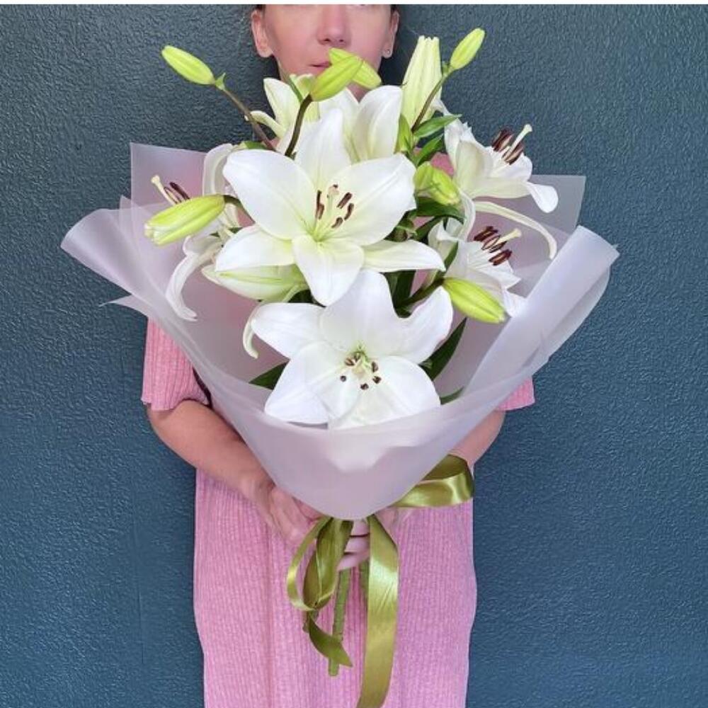 Подарите своим близким нежность и элегантность с букетом из белоснежных лилий. Эти цветы символизируют чистоту и изящество, идеально подойдут для любого случая. Букет оформлен в стильную упаковку и перевязан атласной лентой, что добавляет ему особого шарма. Отличный выбор для тех, кто ценит классические и утонченные подарки.
