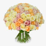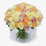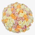 Our pastel pinks and cream roses are the stars of the show in this dramatic bouquet. Get lost in their subtle tones or just enjoy the show as the open and slowly reveal their true colours. Its well worth the wait