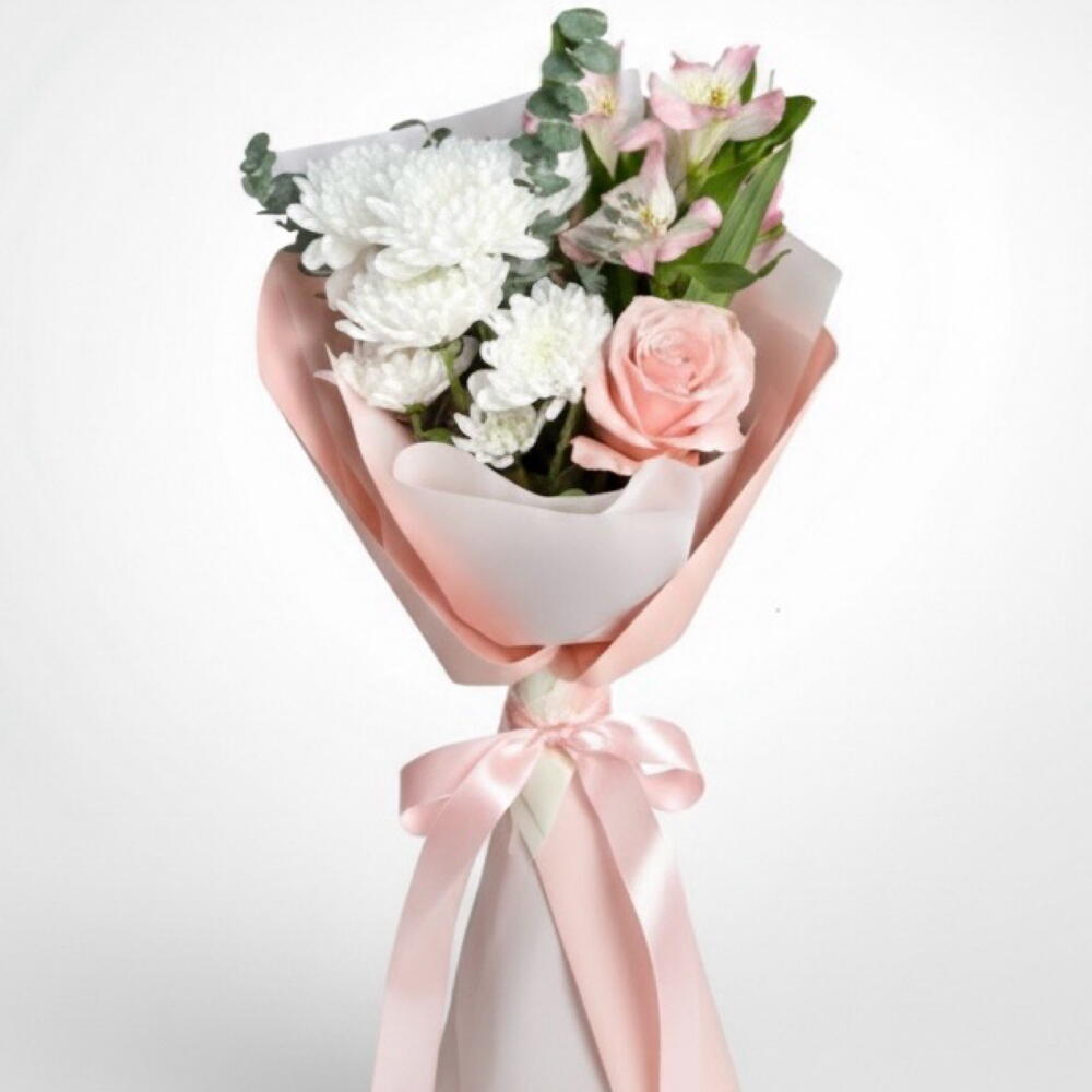 Alstroemeria - 1 pz crisantemo - 1 pz rose rosa - 1 pz