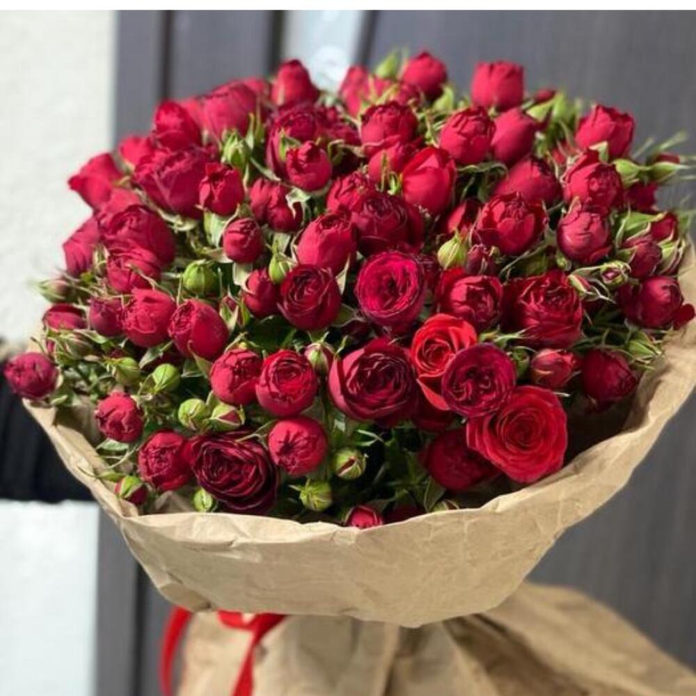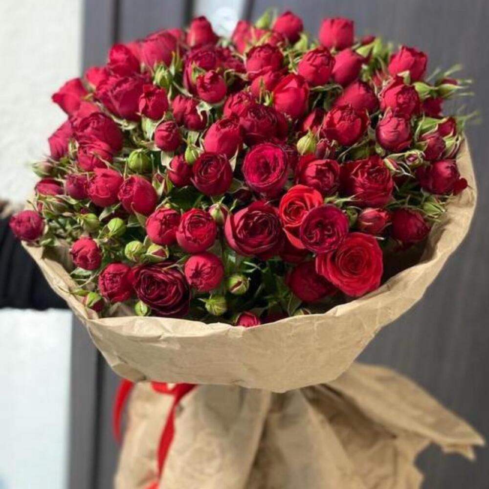 Этот восхитительный букет из ярко-красных спрай роз станет идеальным подарком для тех, кого вы хотите порадовать. Каждый цветок в этом букете излучает страсть и нежность, создавая гармоничный и роскошный образ. Упаковка в натуральную бумагу с красной лентой добавляет дополнительную нотку элегантности. Прекрасно подходит для выражения любви, признательности и уважения на любые праздники и особенные события