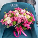 Роскошный букет в нежно-розовой гамме — сочетание пионовидных роз, эустом, белоснежных георгин и ярко-зеленых акцентов. Создан для того, чтобы дарить радость и восхищение. Этот букет идеально подойдет для признания в любви, поздравления с особым событием или просто чтобы порадовать близкого человека. Украшен стильной атласной лентой. ✨ Размер: средний/крупный ✨ Доставка день в день