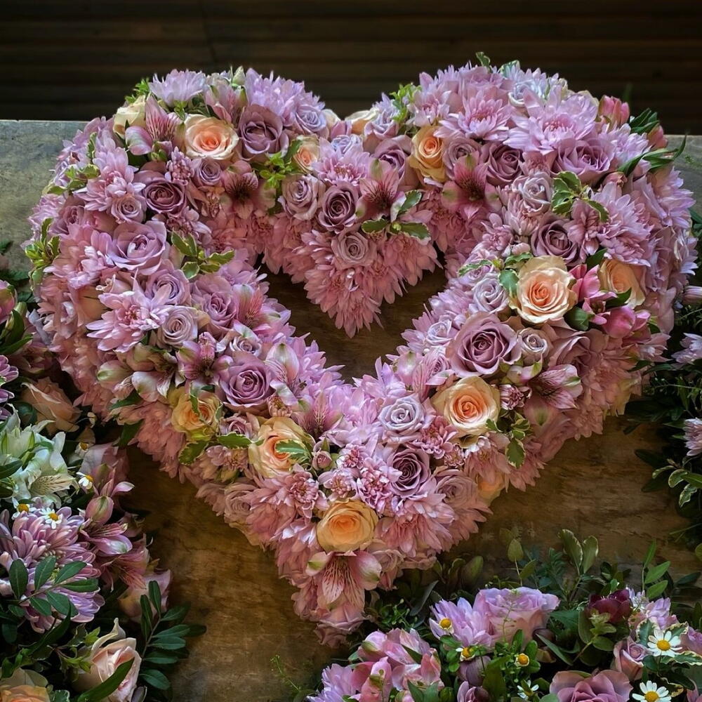 Cuore funebre con fiori misti. Si può anche aggiungere una fascia con una scritta.