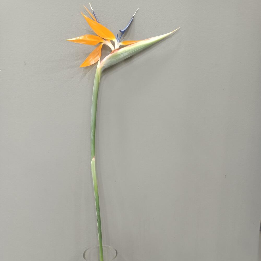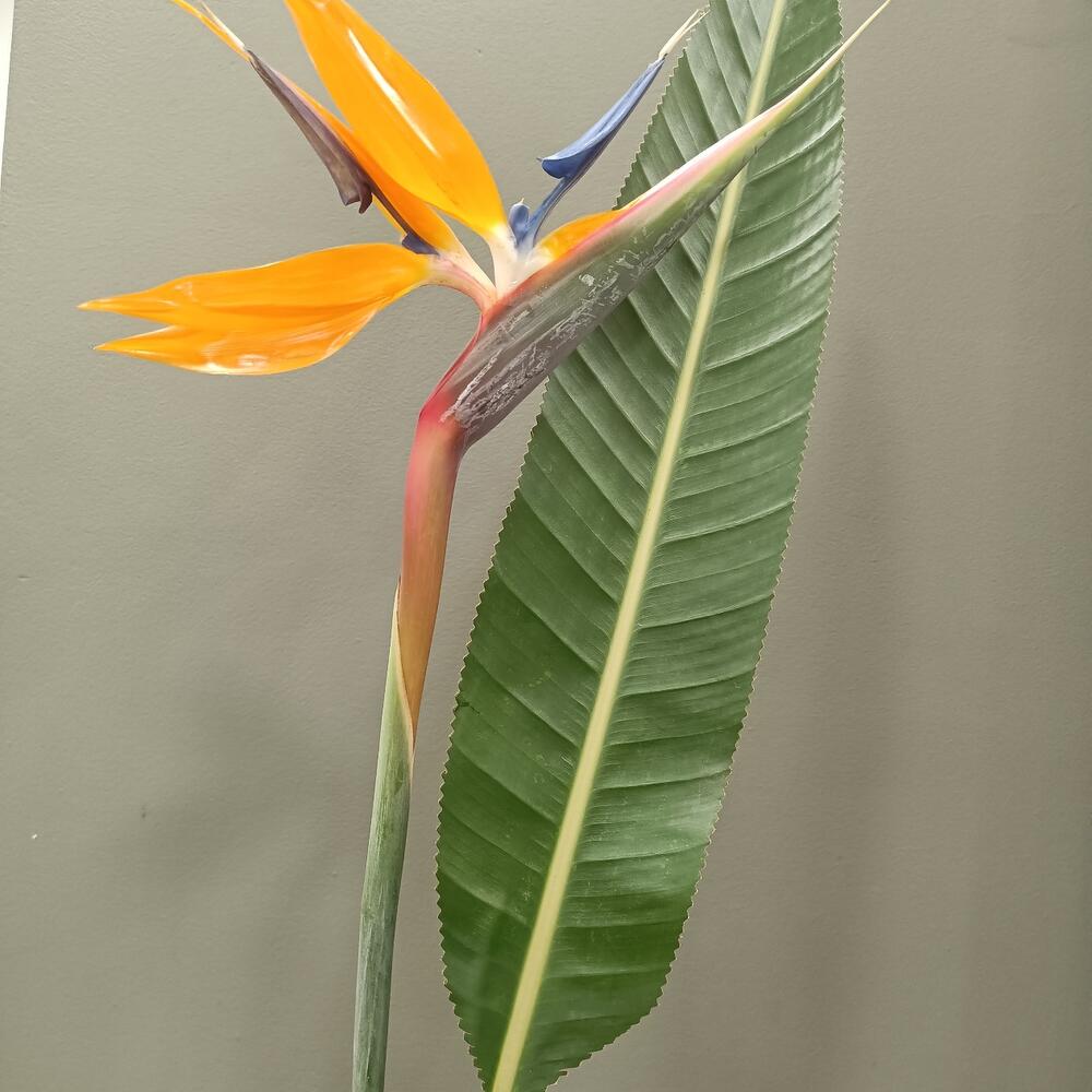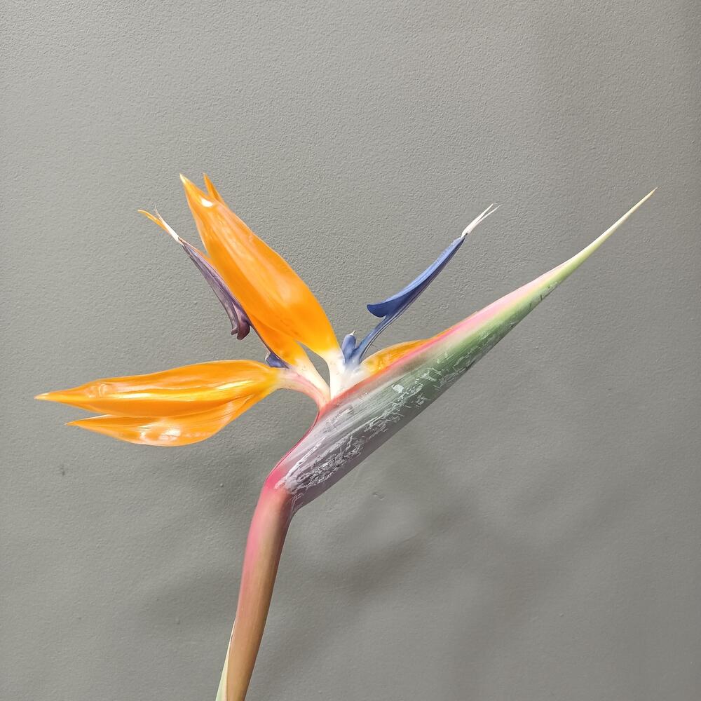 Райская птица это королева цветов. Цветок стрелиция обладает элегантностью породной райской птицы с изящным хохолком. Конструкция очень красивая. Тонкие, прямостоячие, оранжевые прицветники с двумя-тремя голубыми лепестками стоят как горды ирокез. Зелёные стебли похожи на хрупкие ноги журавля.