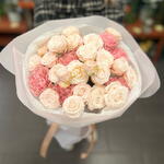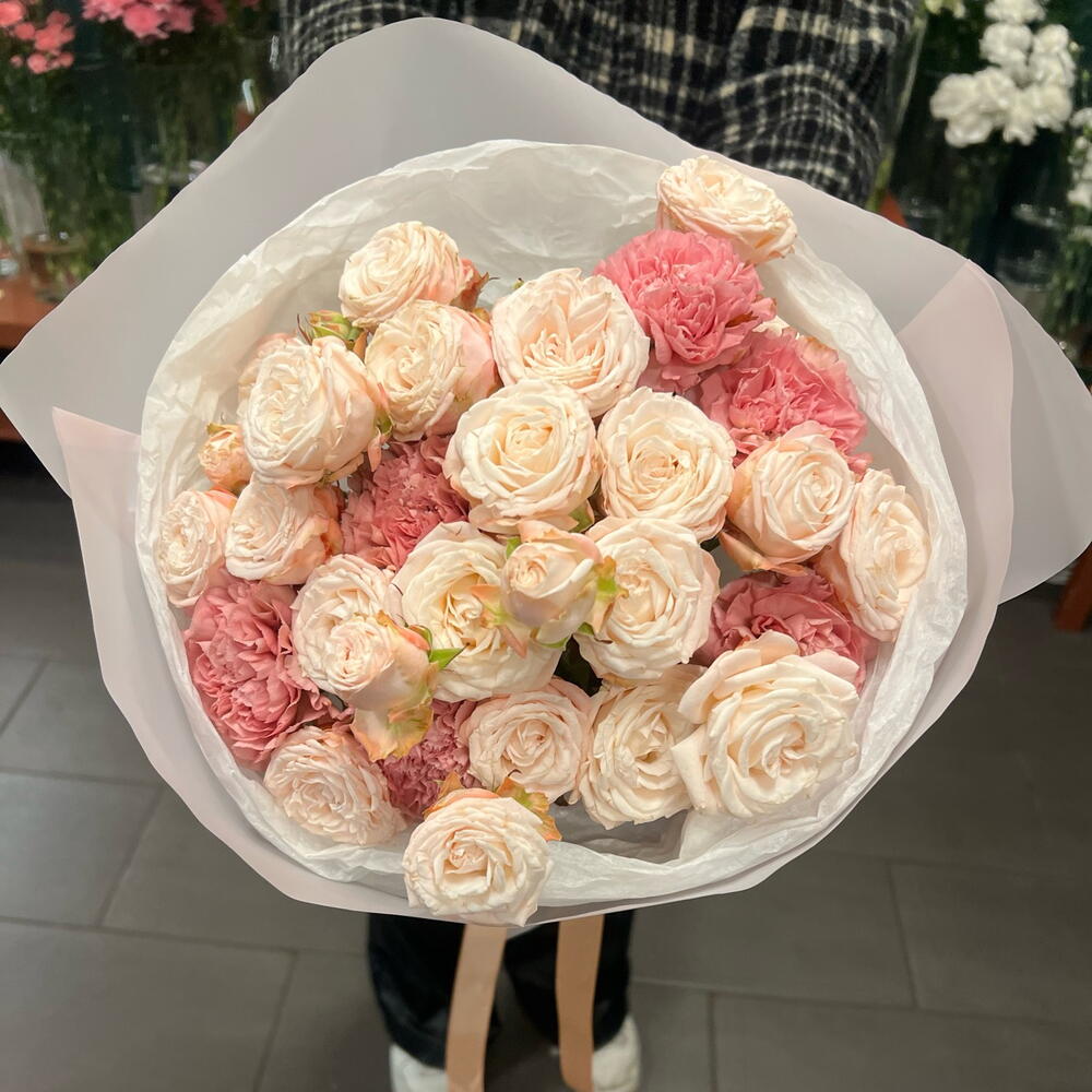 garofano - 6 pz carta decorativa - 2 pz nastro - 1 pz rosa bombastica - 5 pz carta velina - 2 pz