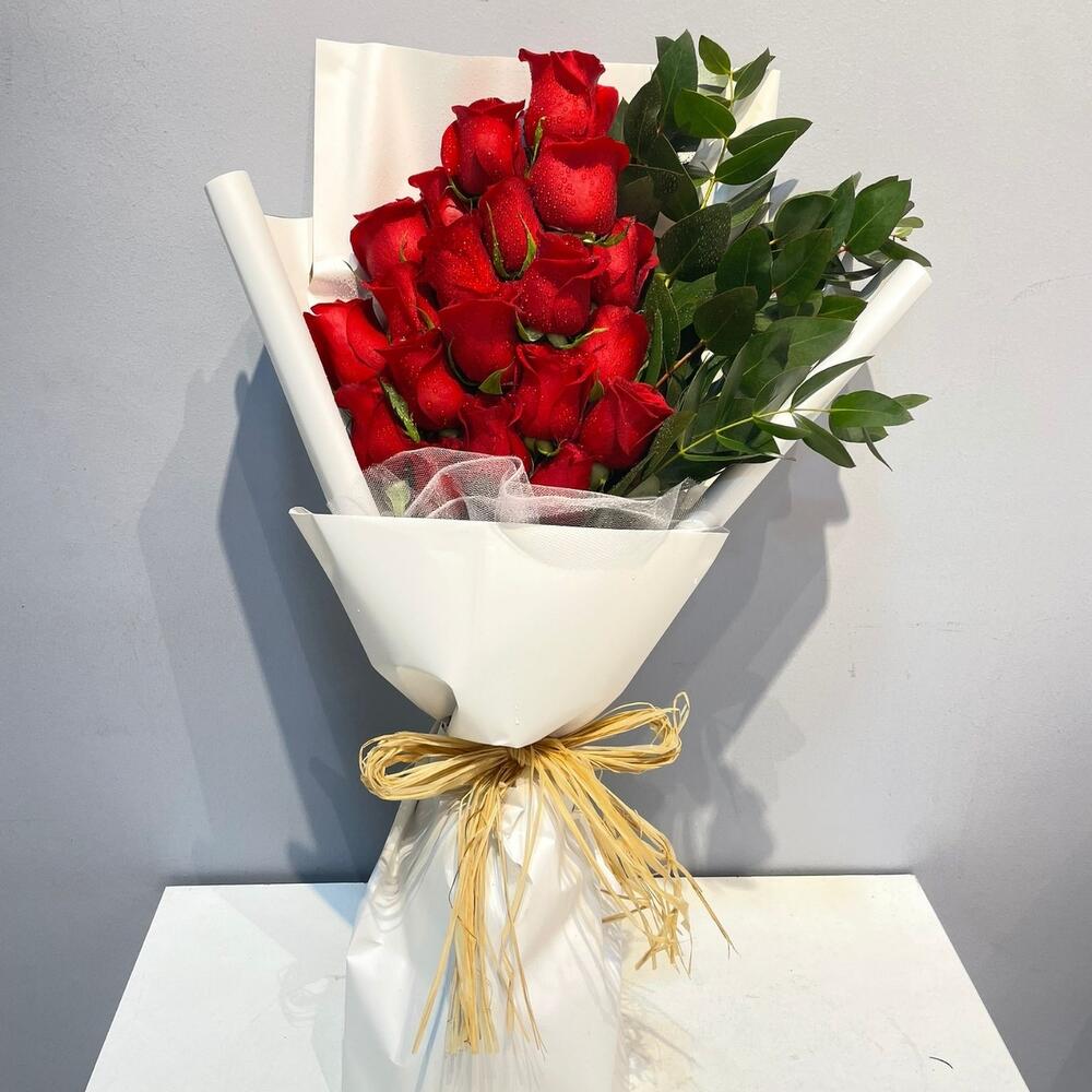 bunch of 20 red rose together with ruscus fresh leaves for cape town - 1 pz