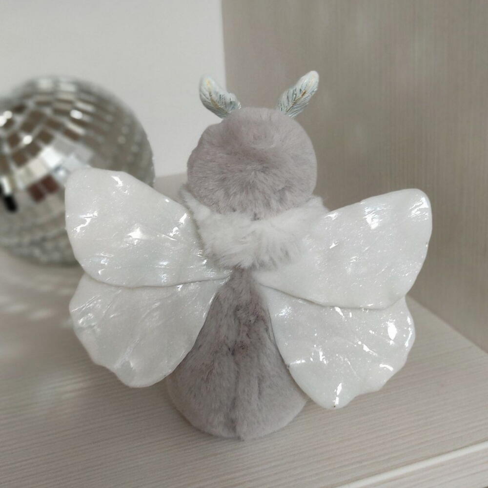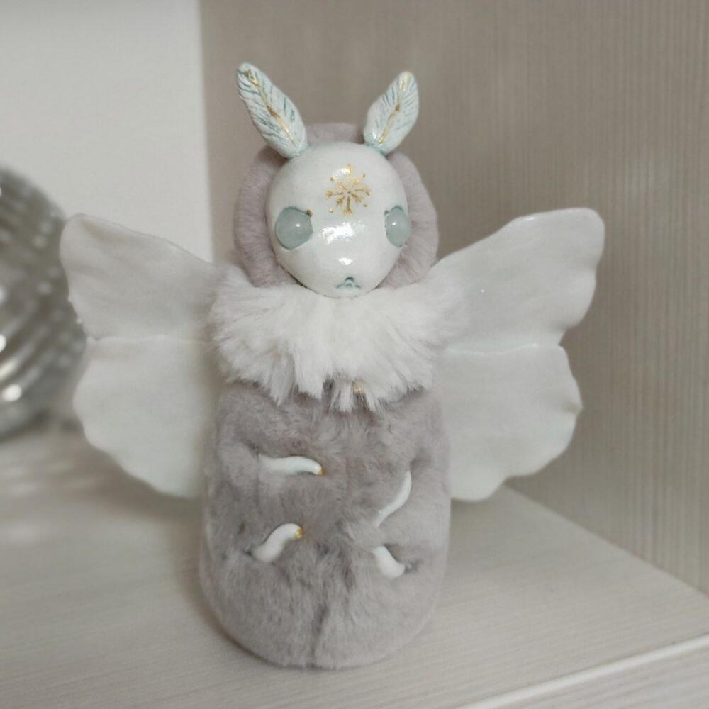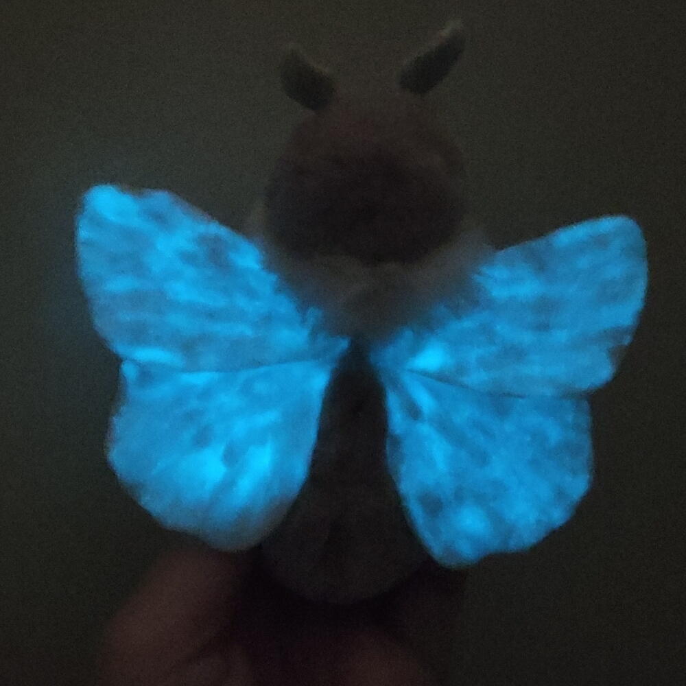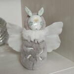 Interior toy, not intended for children. Made of artificial fur and polymer clay, paws move. Fragile, do not injure! If you fill it well with light the wings glow a little green in the dark