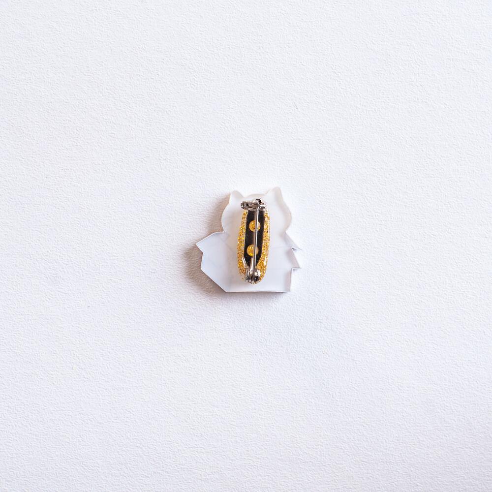 Small size brooch in shape of white cat, badge covered with epoxy resin.