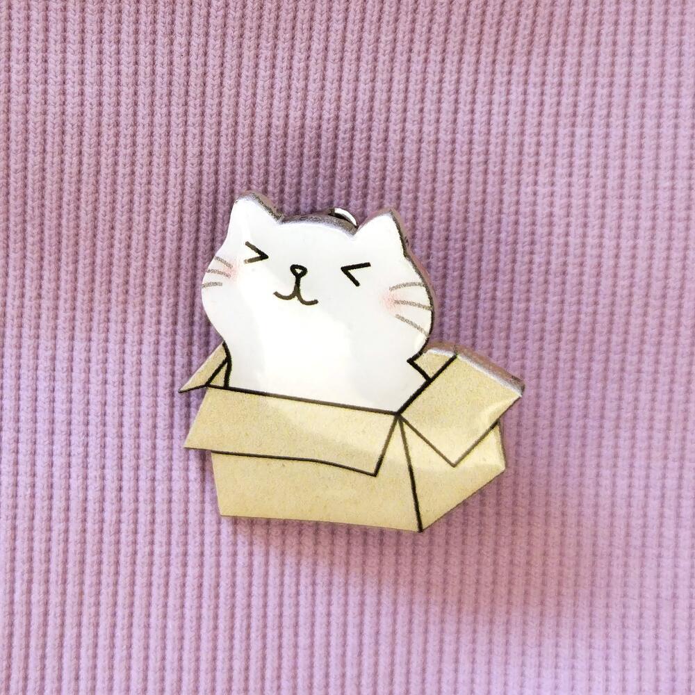 Brooch "Kitten in a box"