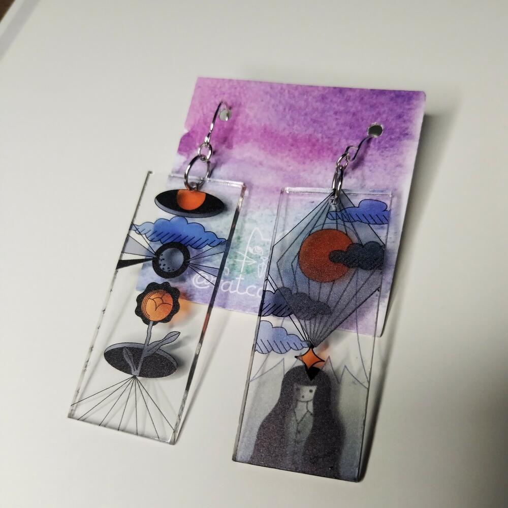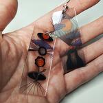 Transparent rectangular earrings in asiatic style with waterproof print from 2 sides. Size of each 2,2 x 5,5. Earhooks material- stainless steel.