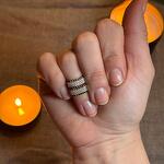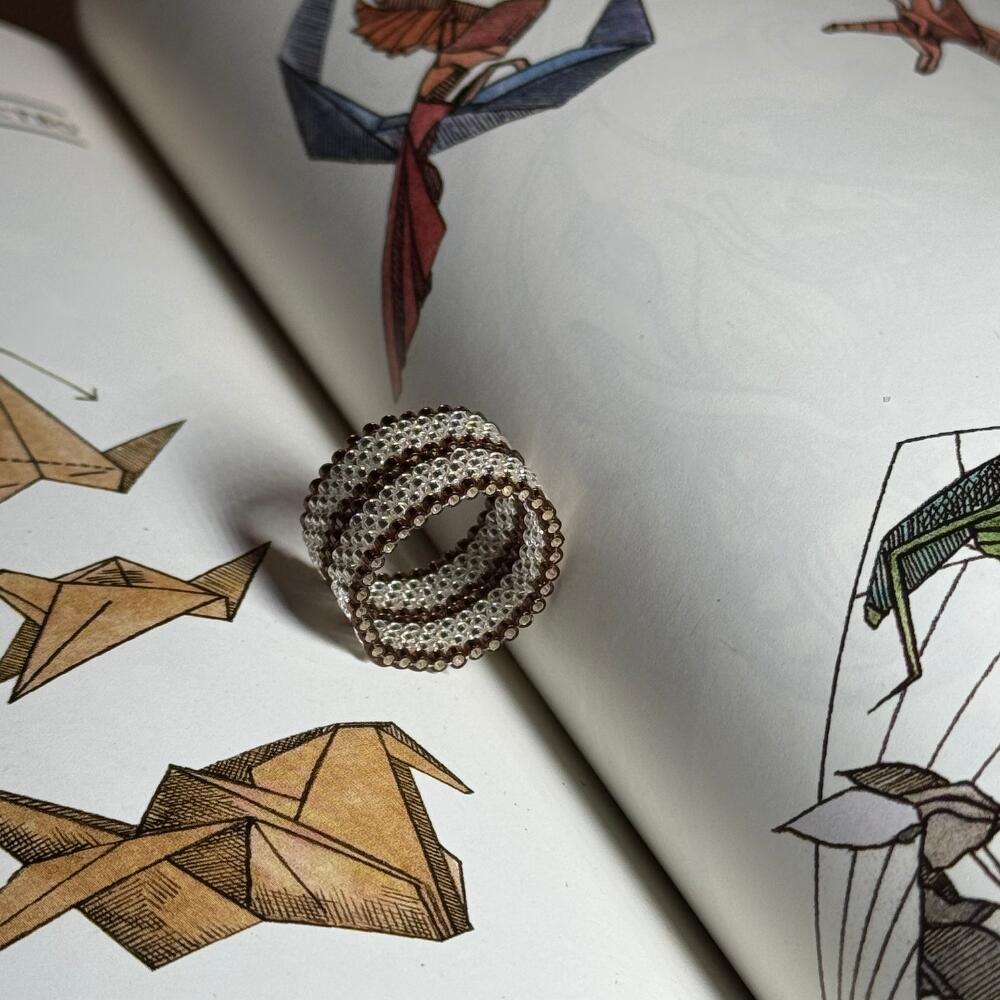 The ring is handmade from high-quality beads. It attracts attention, but it remains an unobtrusive, delicate accent in your image. The inner circumference is 50 mm