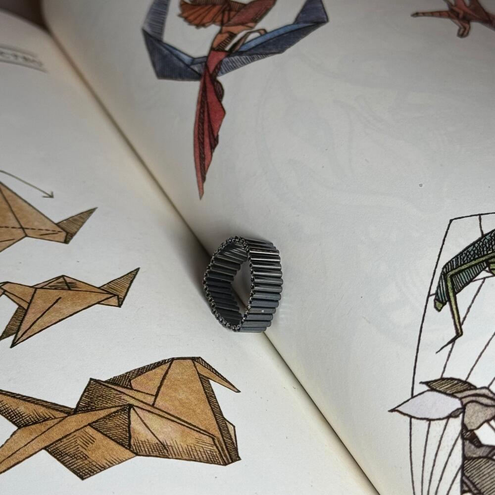 The ring is handmade from high-quality beads. It attracts attention, but it remains an unobtrusive, delicate accent in your image. Available in sizes with inner circumference of 44 mm, 53 mm, 60 mm, 68 mm