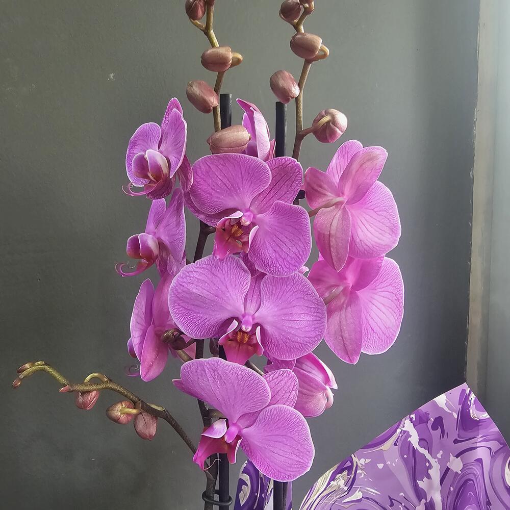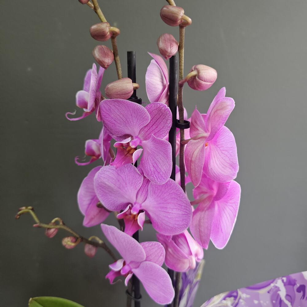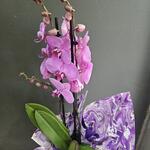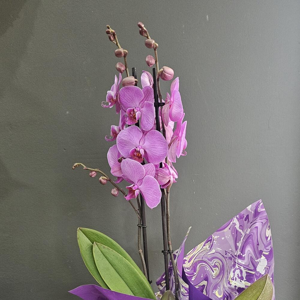 Pink phalaenopsis orchid, decorated with paper wraping in ceramic pot