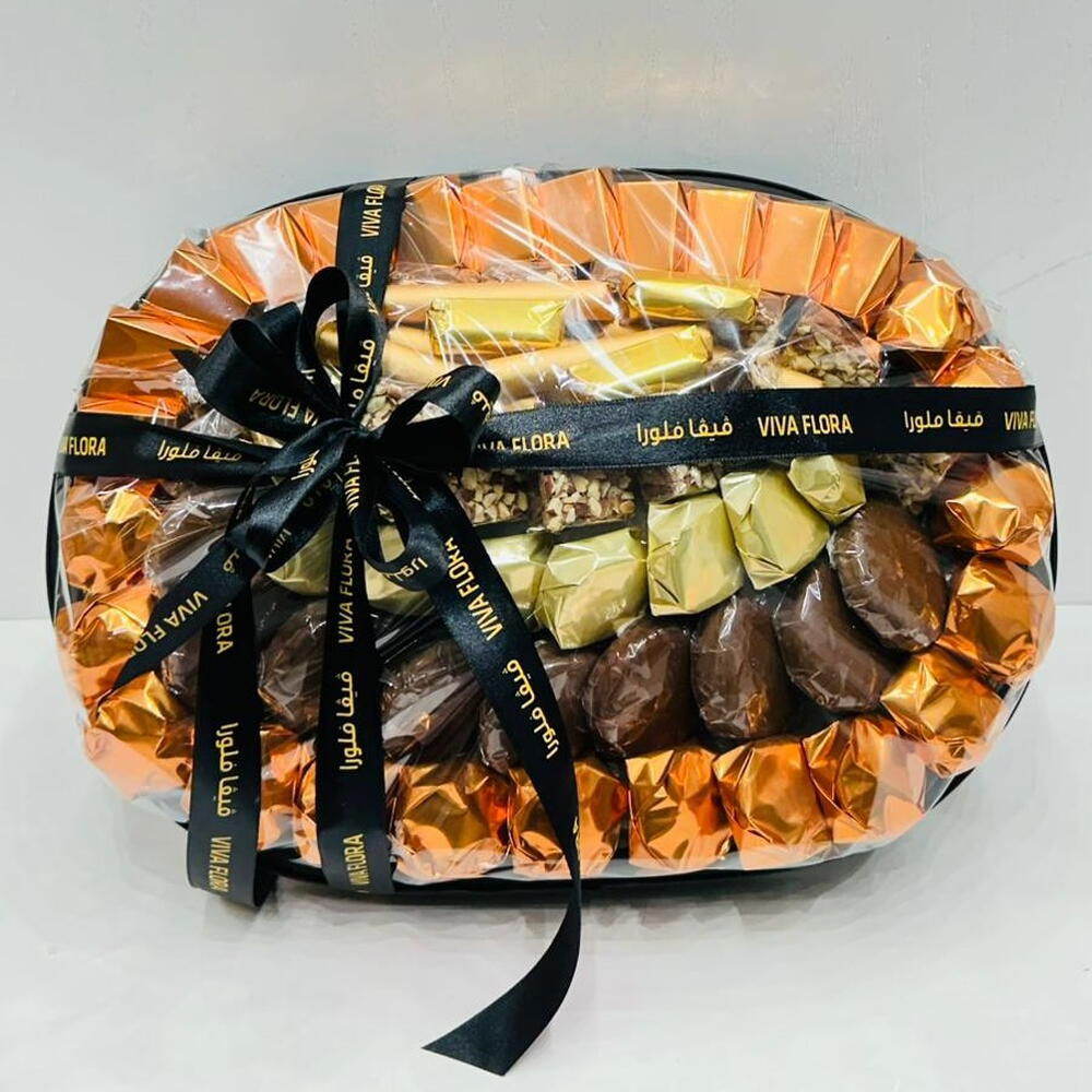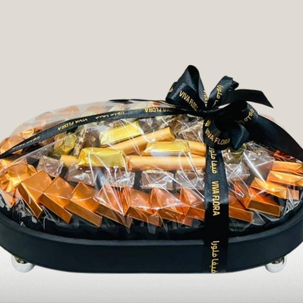 Leather oval chocolate tray of mix Chocolate Carmel Mix nuts chocolate