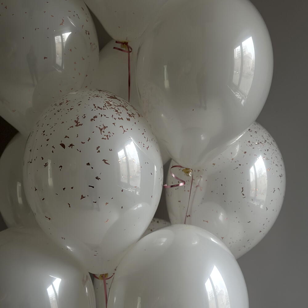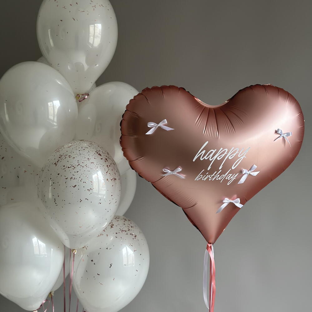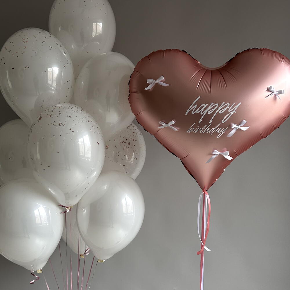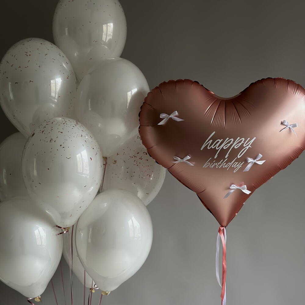 Serce z napisem Wszystkiego najlepszego i 10 białych balonów z konfetti