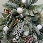 Choinka z żywej jodły nobilis. Udekorowana szklanymi bombkami, szuszonymi dodatkami