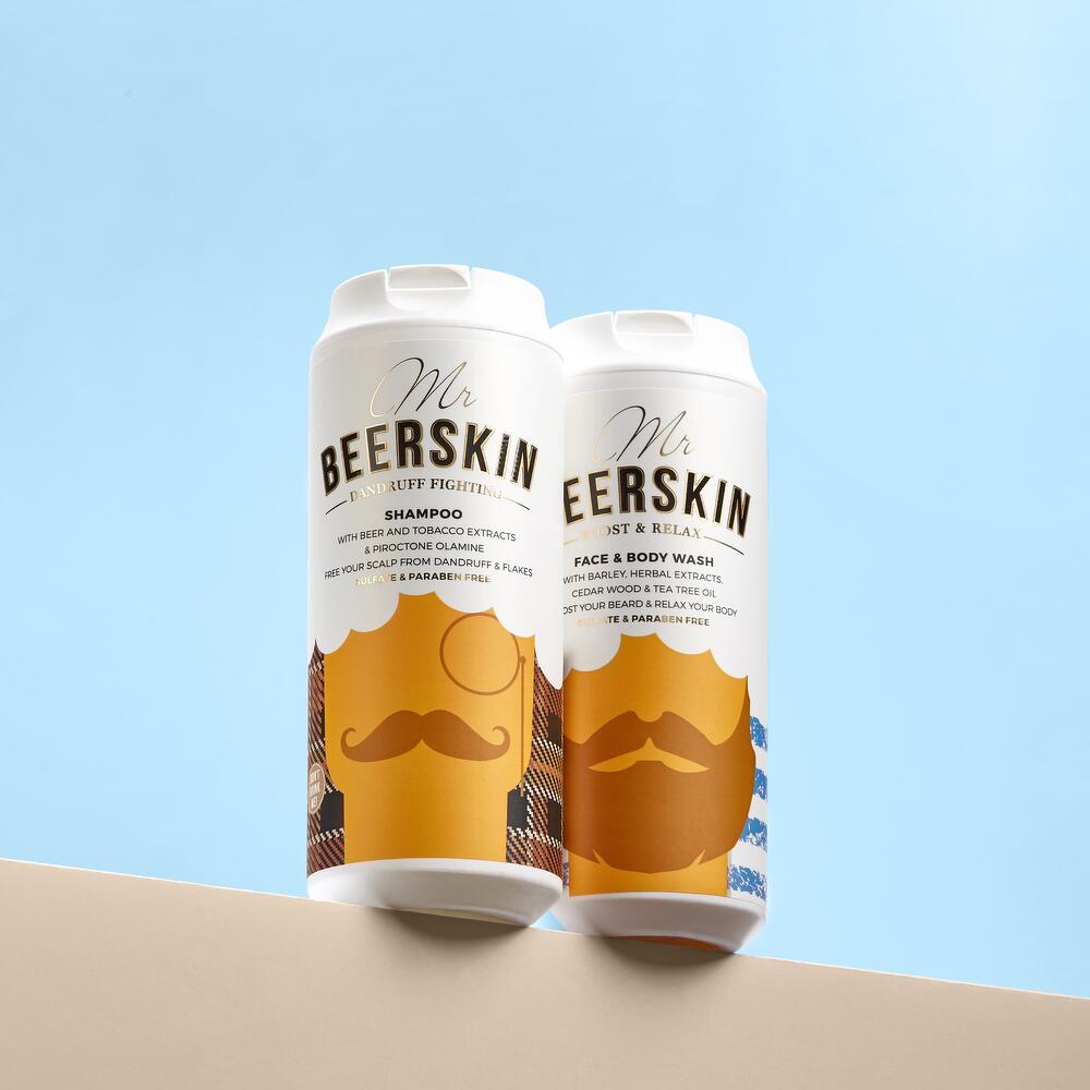 1. Face & Body Wash with Barley, Herbal Extracts, Cedarwood & Tea Tree Oil Boost your beard and relax your body Mr. Beerskin Face & Body Washing Gel is a gentle moisturizing & soothing washing gel for everyday use. It contains Barley and Hops Extracts, which are rich in polyphenols, and bring powerful antioxidant protection. Green Tea, Aloe Leaf Extract, and Panthenol enhance hydration and have softening and soothing effects on the skin. Natural Thyme, Calendula, and Chamomile Extracts regenerate and rejuvenate, while Cedar Wood&Tea Tree oils work in synergy with Allantoin, moisturize, relieve dryness, leave skin feeling smooth, and provide an excellent calming and soothing effect on the skin. Gentle formula with a calming mix of 11 Herbal Extracts and 2 Essential Oils provides a soft feeling to the skin during and after use and gives a wonderful aromatic scent. Formula is free of sulfates, parabens, silicones, artificial fragrances or perfumes and dyes. 2. Dandruff Fighting Shampoo with Beer & Tobacco Extracts and Piroctone Olamine Free your scalp from dandruff and flakes Mr. Beerskin Dandruff Fighting Shampoo contains 4 main Beer Extracts (hydrolyzed yeast extract, barley seed extract, hop extract, and oat extract) with a high proportion of biologically relevant proteins, vitamins and minerals, and Tobacco extract, which has cleansing and antimicrobial properties, and its fantastic aroma makes the shampoo unique! Powerful, but gentle formula with excellent foaming power and good detergency gently cleanses the hair and scalp. It is enriched with Piroctone Olamine, which controls the growth of microorganisms effectively and is directly targeting the cause of dandruff. D-Panthenol prevents hair damage, thickens hair, improves luster and sheen, and acts as a long-lasting hair moisturizer. A calming mix of 13 Herbal Extracts works in synergy with Allantoin, which makes it easier to remove that flaky scalp while moisturizing and soothing the new scalp underneath and retaining moisture. Formula is free of sulfates, parabens and silicones.