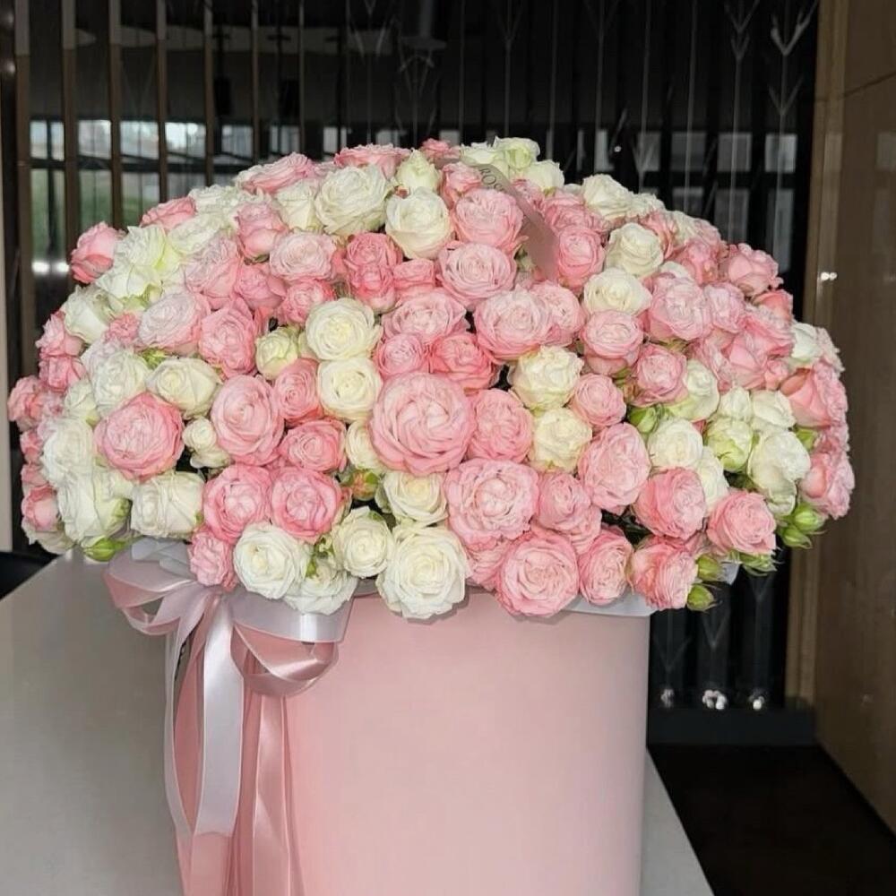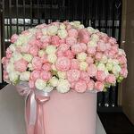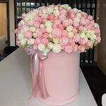 Представляем вашему вниманию элегантную высокую шляпную коробку, в которой сложен гармоничный букет из 99 пионовидных роз. 50 ярко-розовых цветов вида Bombastic придают композиции нежности, в то время как 49 белых роз подчеркивают ее чистоту и изысканность. Завершает этот изысканный подарок стильная атласная лента. Идеальное решение для выражения самых глубоких и искренних чувств.