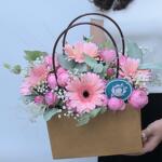 Eukaliptus - 5 szt. сухоцветы лагурус - 5 szt. герберы - 4 szt. силва пинк - 5 szt.