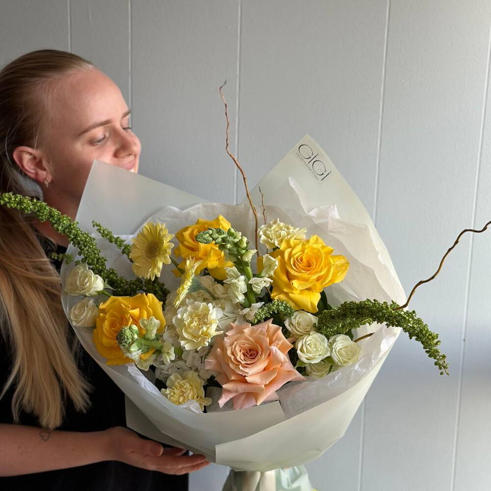 Niecierpek - 2 szt. Hortensja - 1 szt. Gerbera - 2 szt. Zielone - 2 szt. wierzba - 2 szt. francuskie róże - 4 szt. róże ogrodowe - 2 szt.