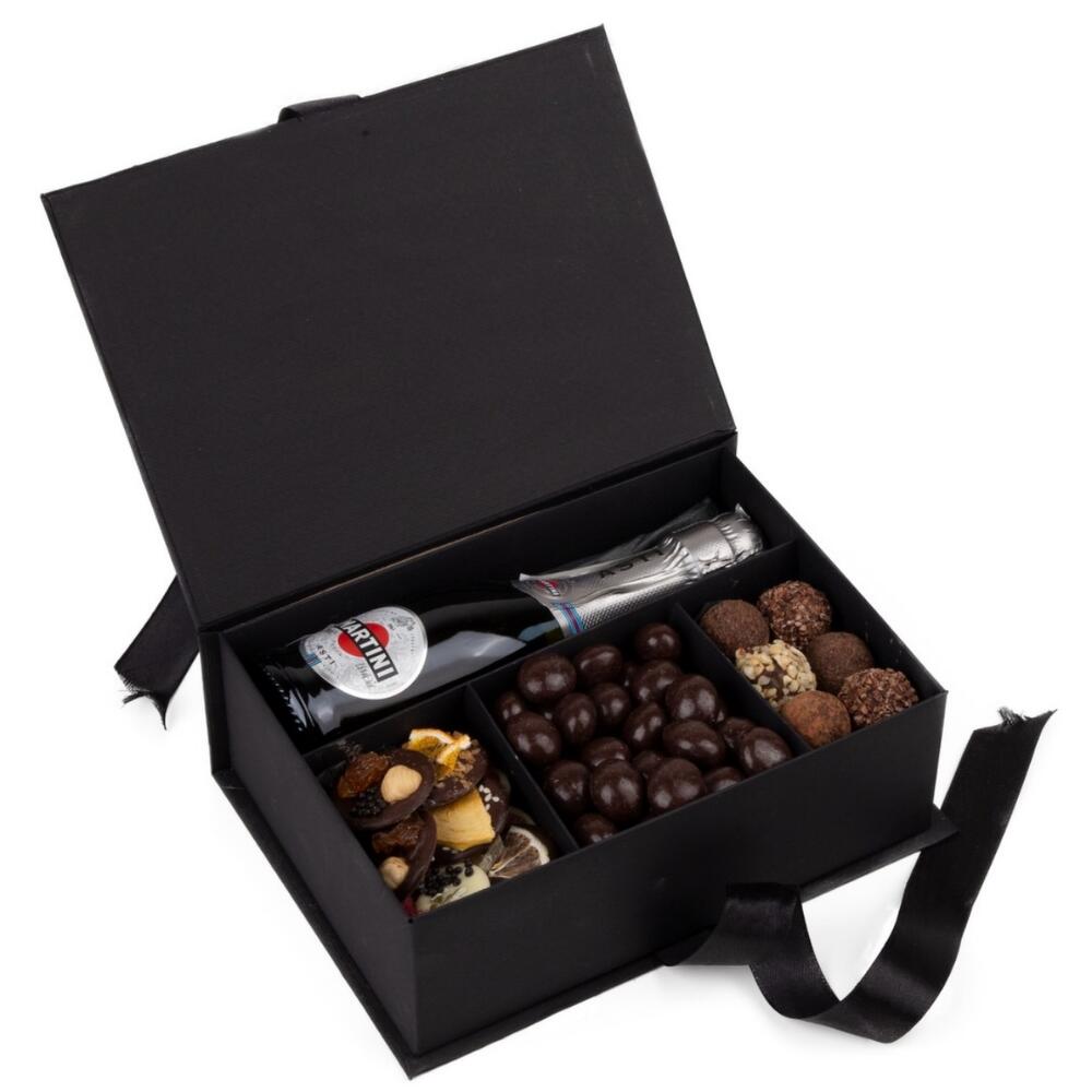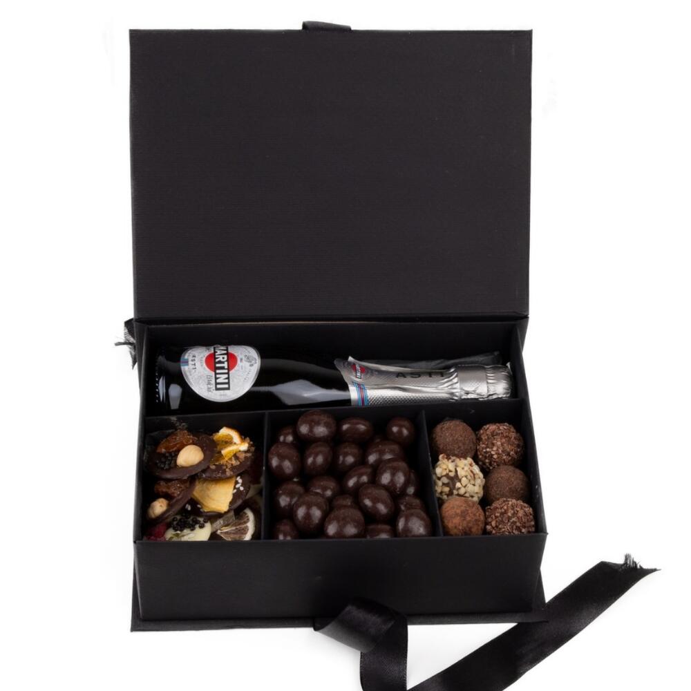 Конфеты ручной работы - 12 szt. шоколадное драже - 200 g шоколадные медианты - 9 szt. игристое вино martini asti - 200 ml