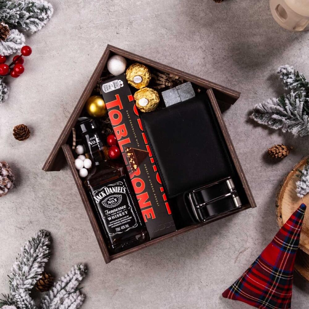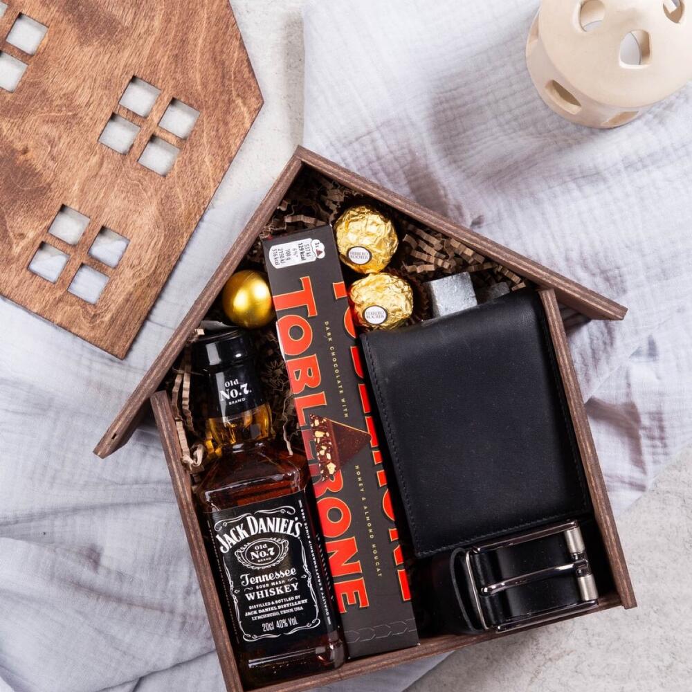 Виски jack daniels - 200 ml камни для виски - 2 szt. ремень - 1 szt. кожанный кошелек - 1 szt. шоколадные конфеты toblerone - 100 g
