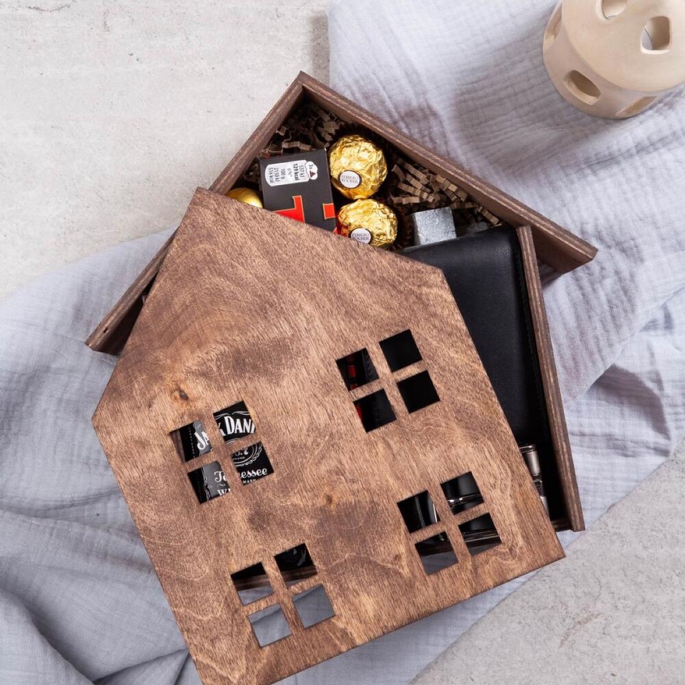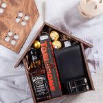Ширина 20 см. Длина 25 см. Высота 10 см. Подарочная коробка включает: - виски Jack Daniels: 200 мл, - шоколадная конфета Toblerone: 100 г, - кожаный кошелек, - ремень, - камни для виски: 2 шт. Код: 184543