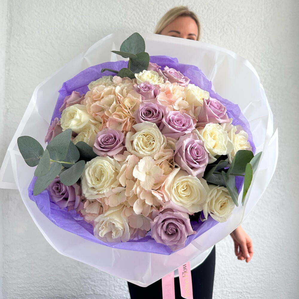 Hortensja - 3 szt. Róża - 25 szt. Eukaliptus Baby Blue - 3 szt.
