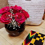 This charming arrangement features lush red roses, each bloom exuding deep passion and romance, creating a bold and vibrant focal point.