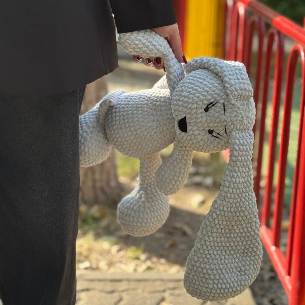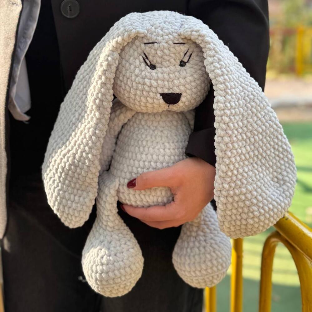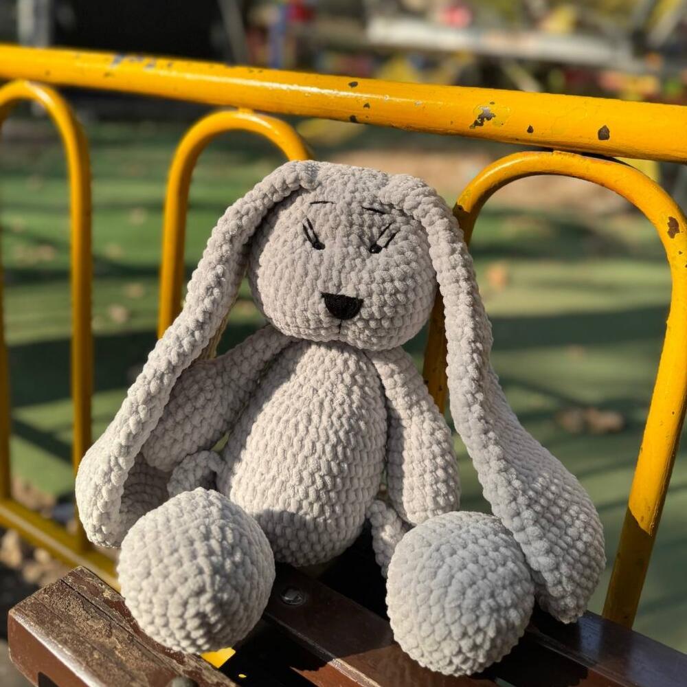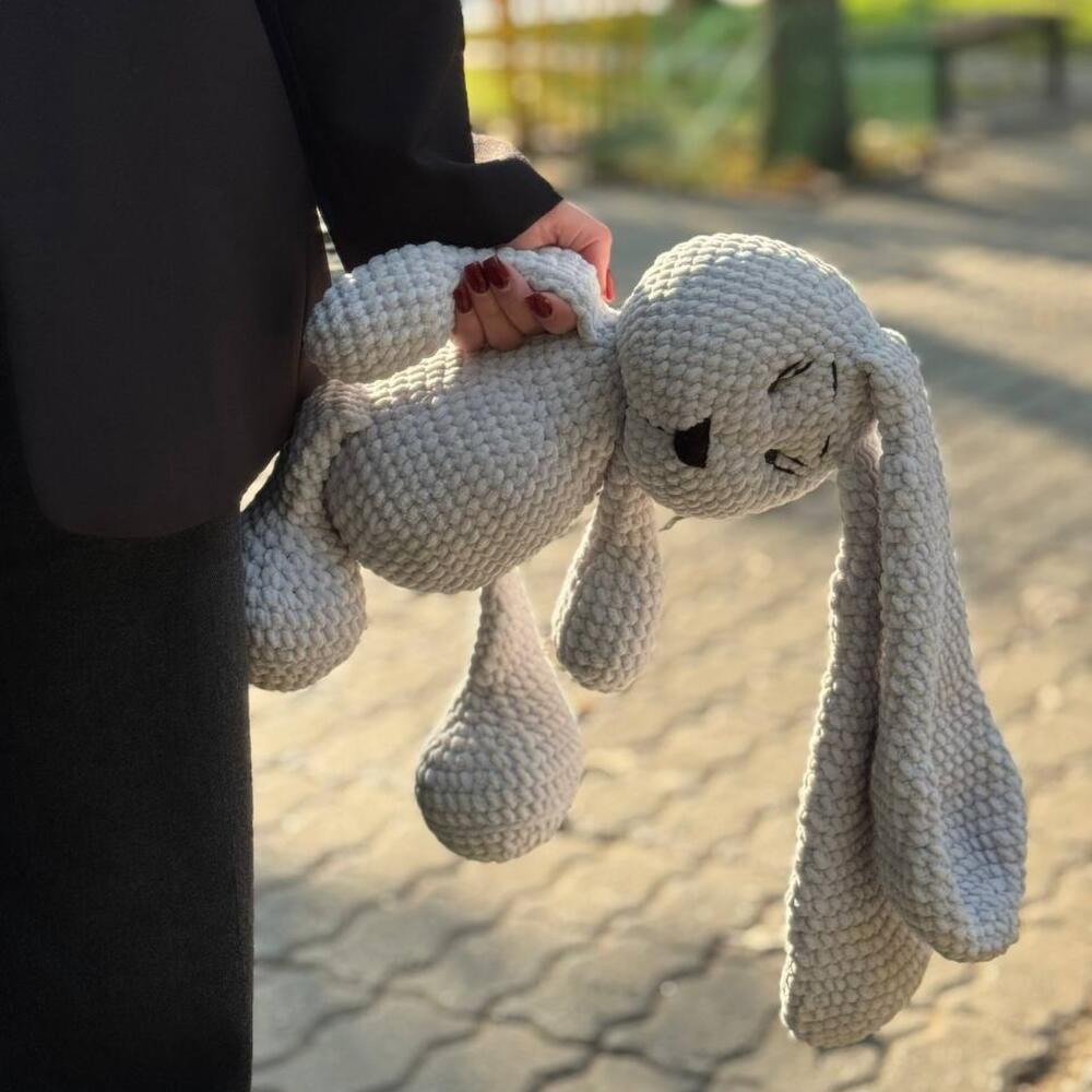 Милый вязаный зайка, словно оживший из детских сказок. Его длинные ушки, мягкие лапки и задумчивый взгляд создают атмосферу уюта и спокойствия. Идеальный компаньон для тёплых вечеров и добрых объятий.