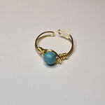 Adjustable ring handcrafted with copper wire and a Turquoise crystal. Revered as a symbol of protection and strength, Turquoise is believed to bring healing energy, inner calm, and good fortune. Its vibrant hue adds a touch of timeless beauty to any jewelry collection. Wire color: Gold